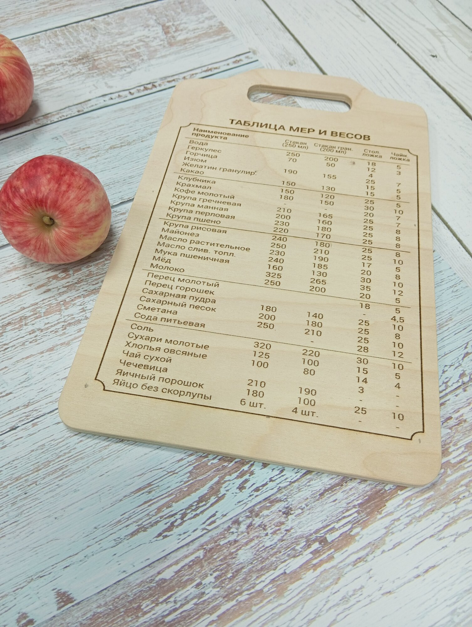 Ниже Вы можете прочитать отзывы на Доска разделочная деревянная "Гравированная таблица мер" 29 х 18 см., ознакомится с подробными характеристиками, посмотреть интересные обзоры и фотографии на Доска разделочная деревянная "Гравированная таблица мер" 29 х 18 см..