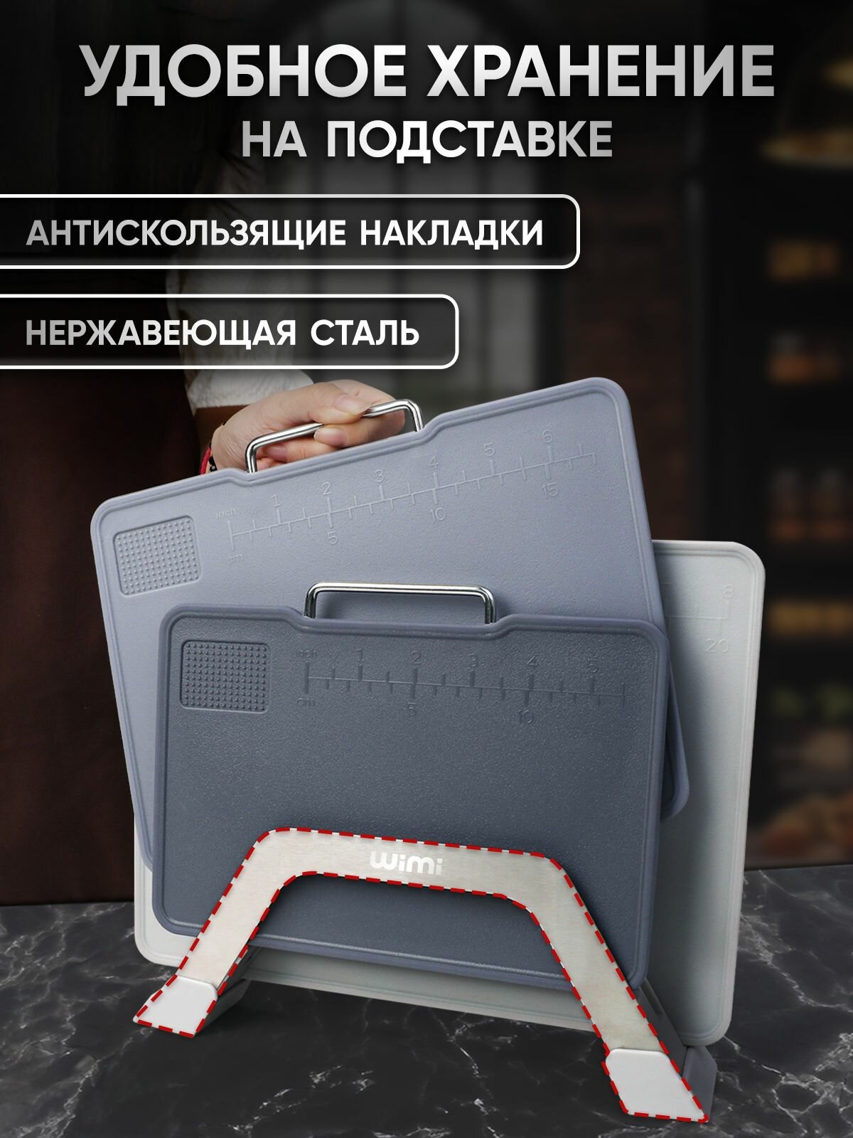 Разделочные доски WiMi, на подставке, двусторонние, нескользящие, с желобками
