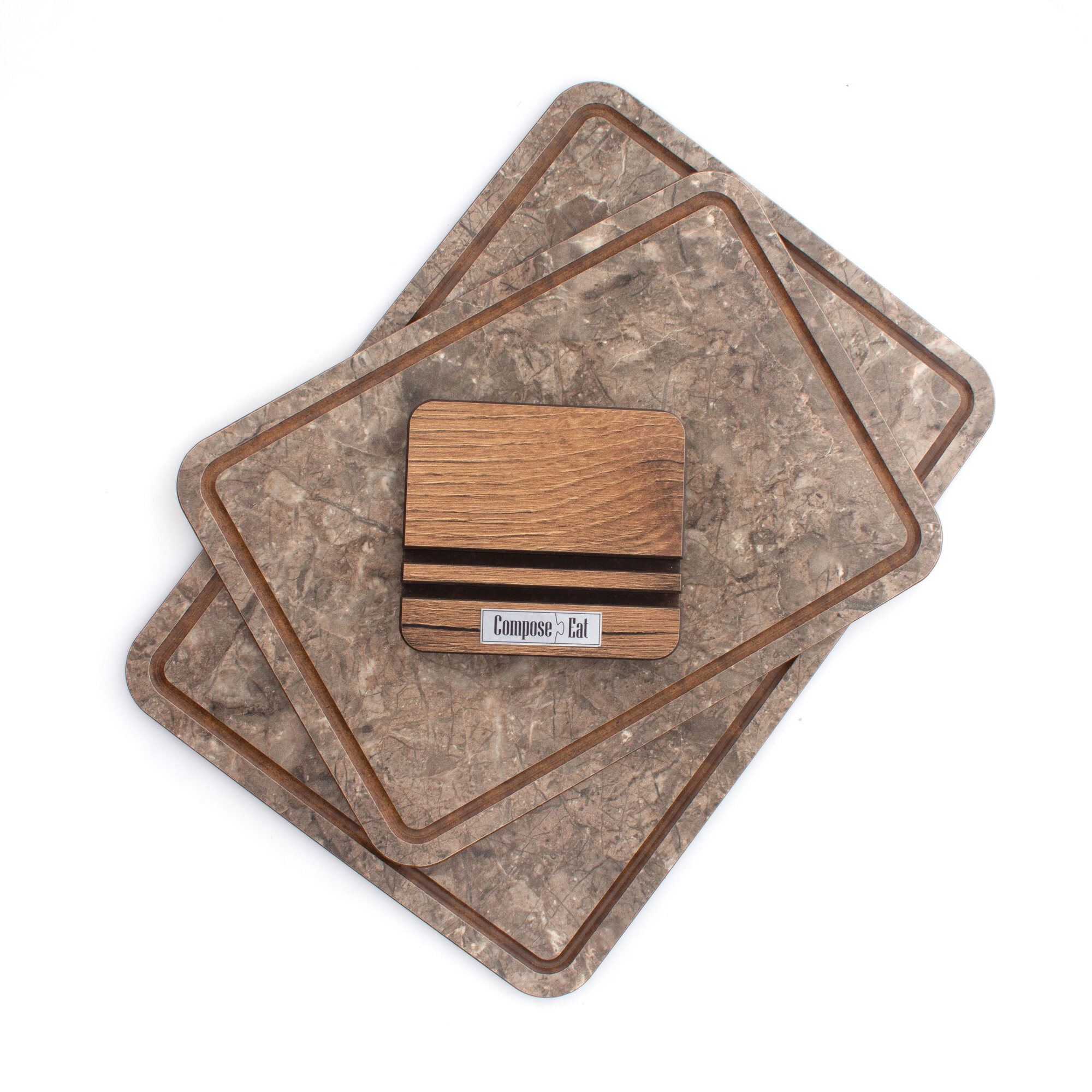 Купить Набор разделочных досок на подставке 2 шт, мрамор коричневый ComposeEat арт. NRD23031OA4