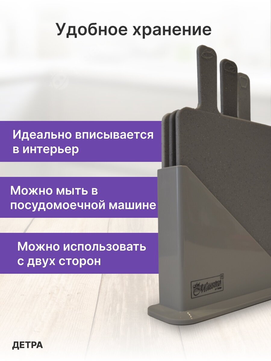 Набор разделочных досок Maestro MR-1789G из 3-х пласт. досточек + подставка 19,5х23,5 интересное: