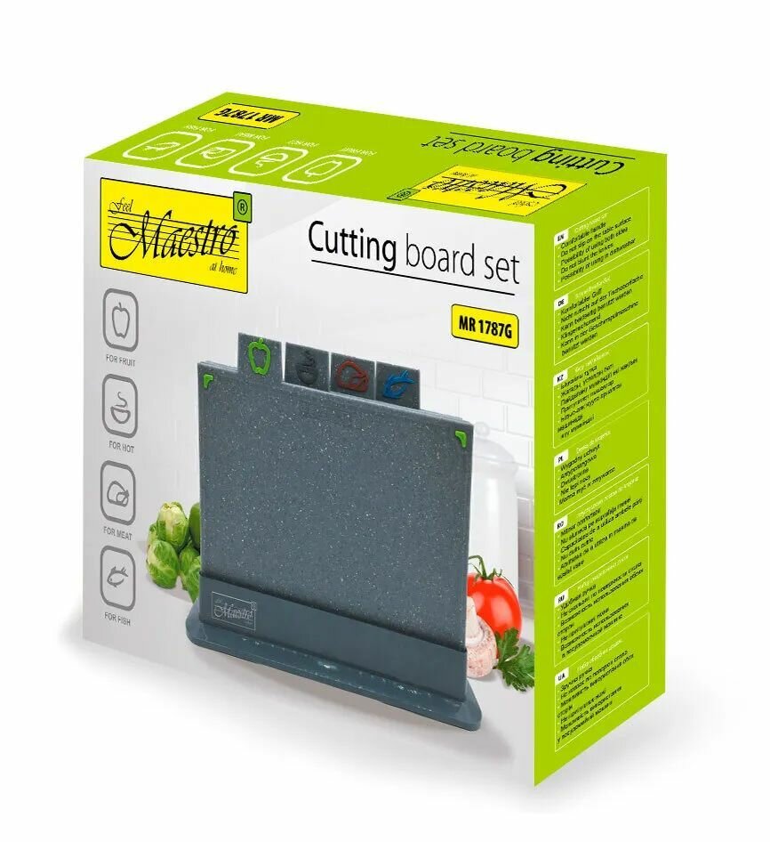 Купить Набор разделочных досок Maestro MR-1787G из 4-х пласт. досточек + подставка 29х19,5