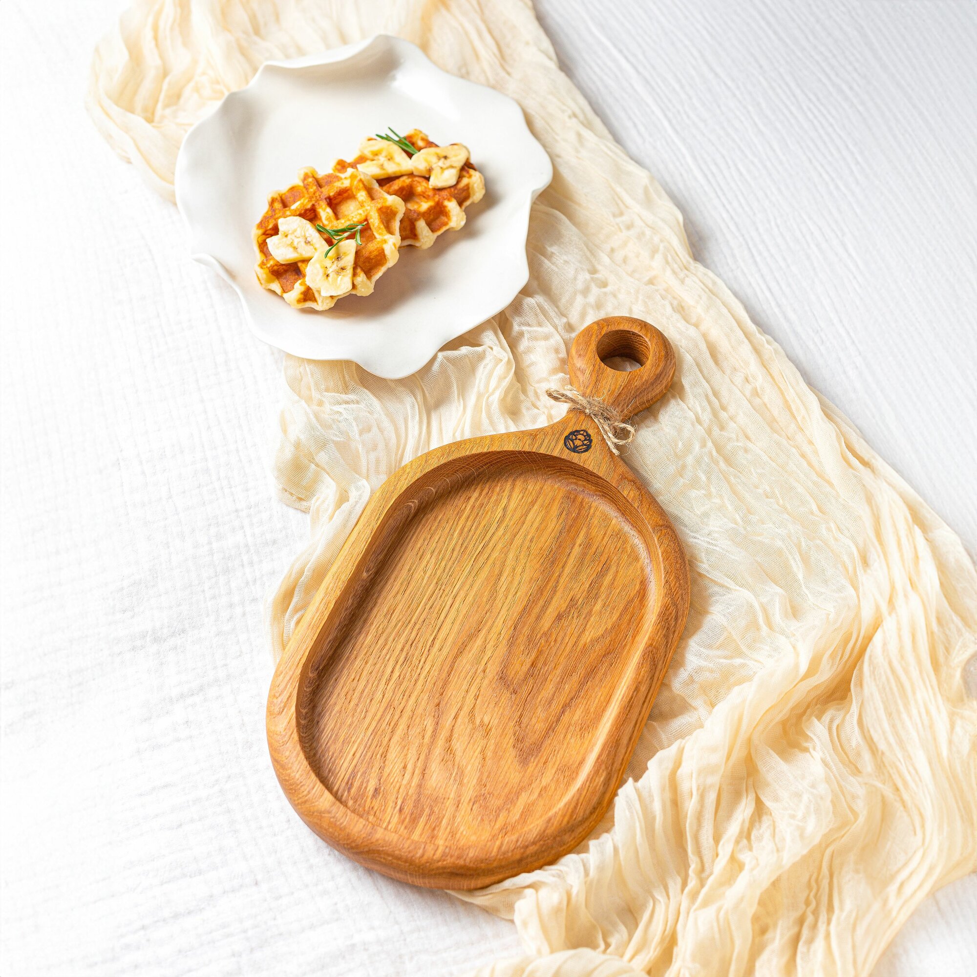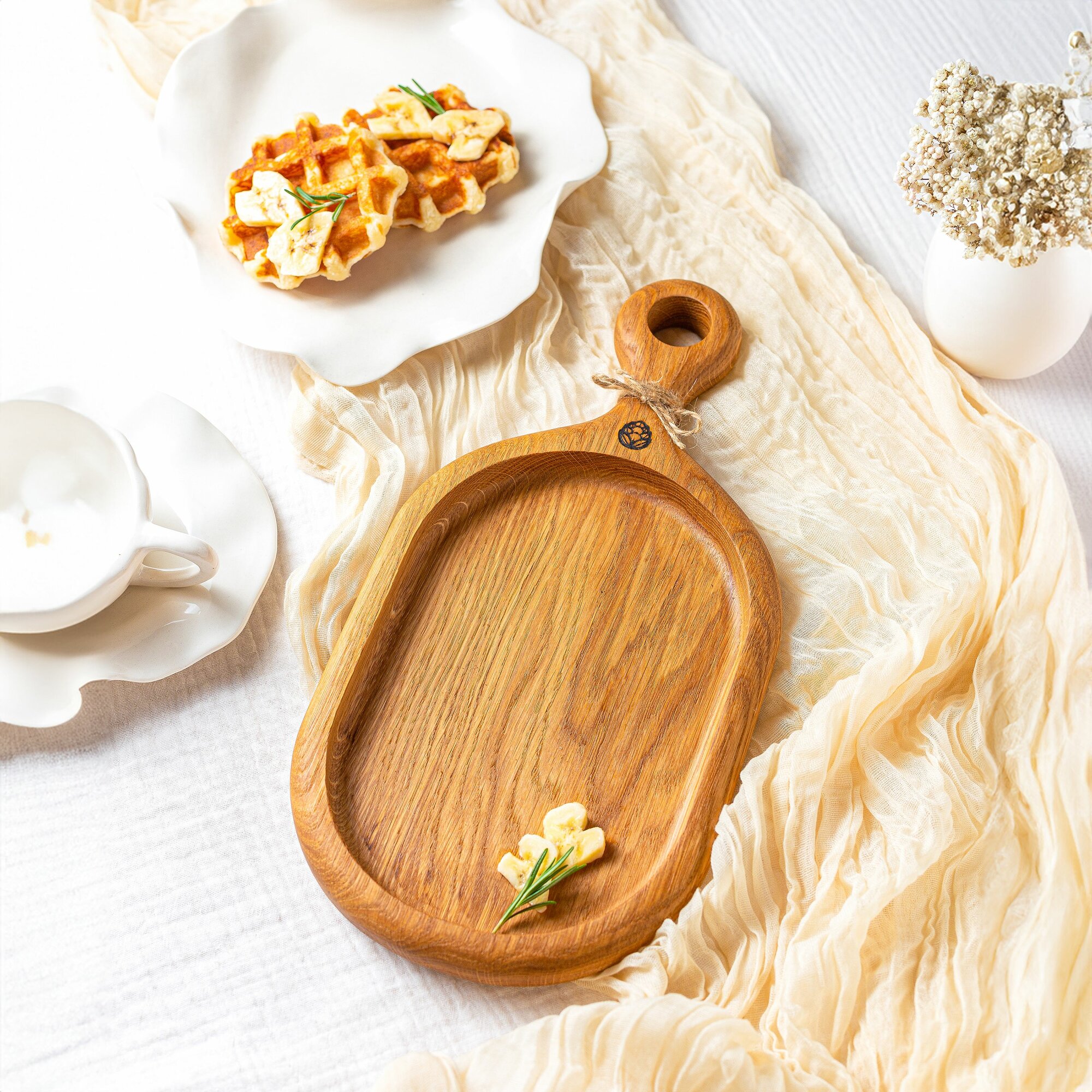 Купить Сервировочная доска из дерева/Менажница деревянная из цельного дуба/Блюдо для сервировки
