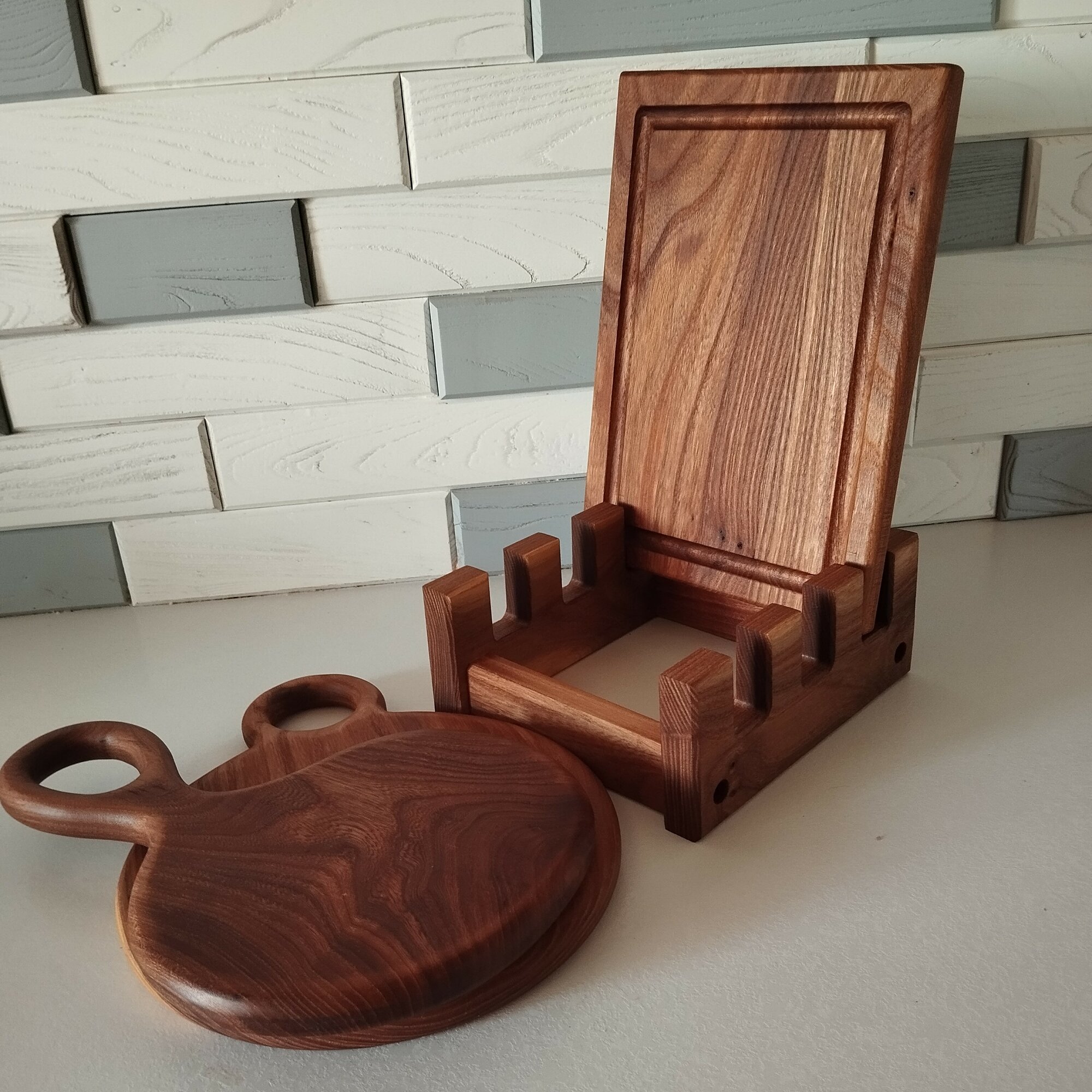Доска разделочная деревянная для кухни набор + подставка, Набор 2 в 1