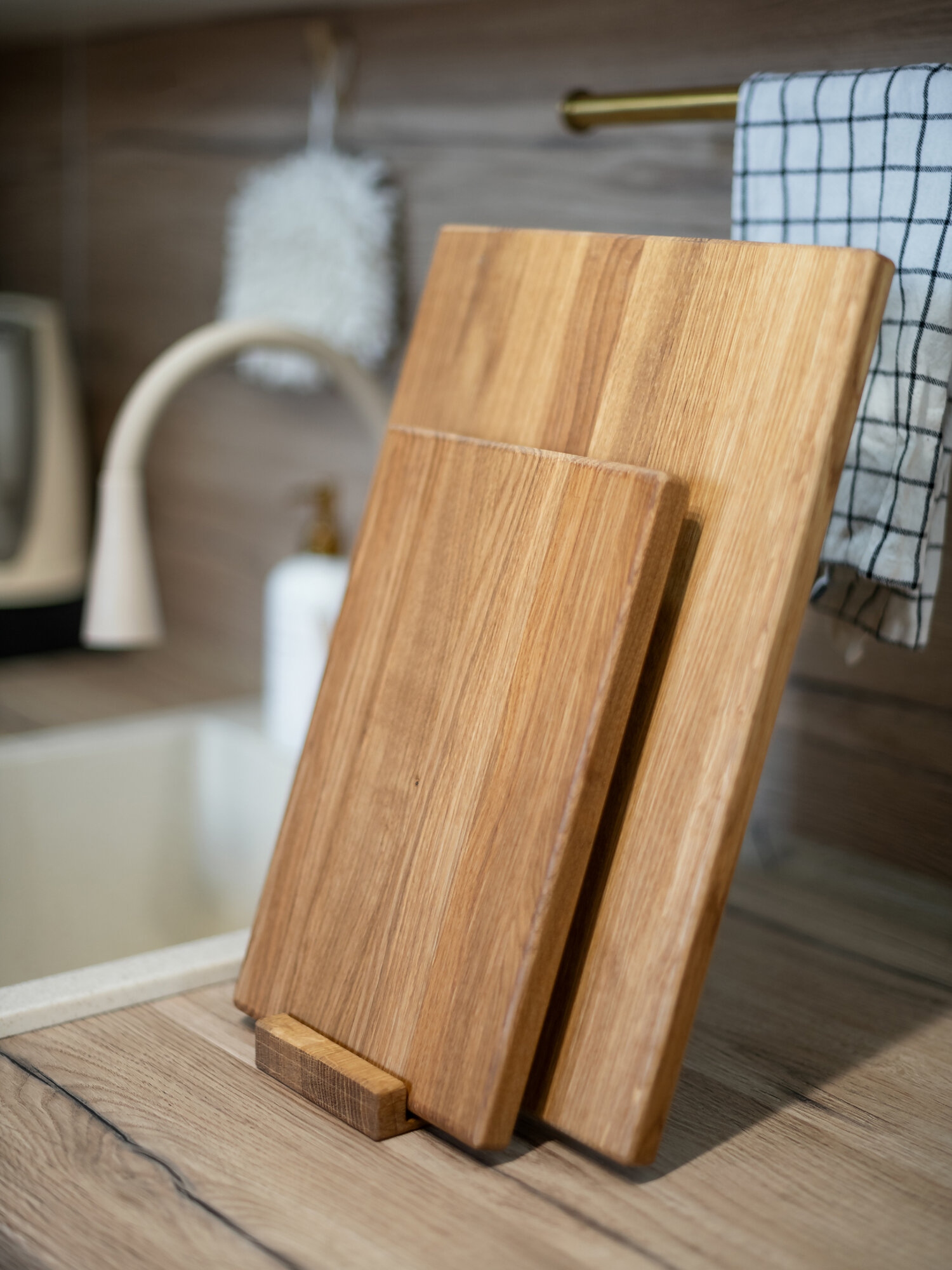 Доска разделочная деревянная для кухни набор + подставка, Набор 2 в 1