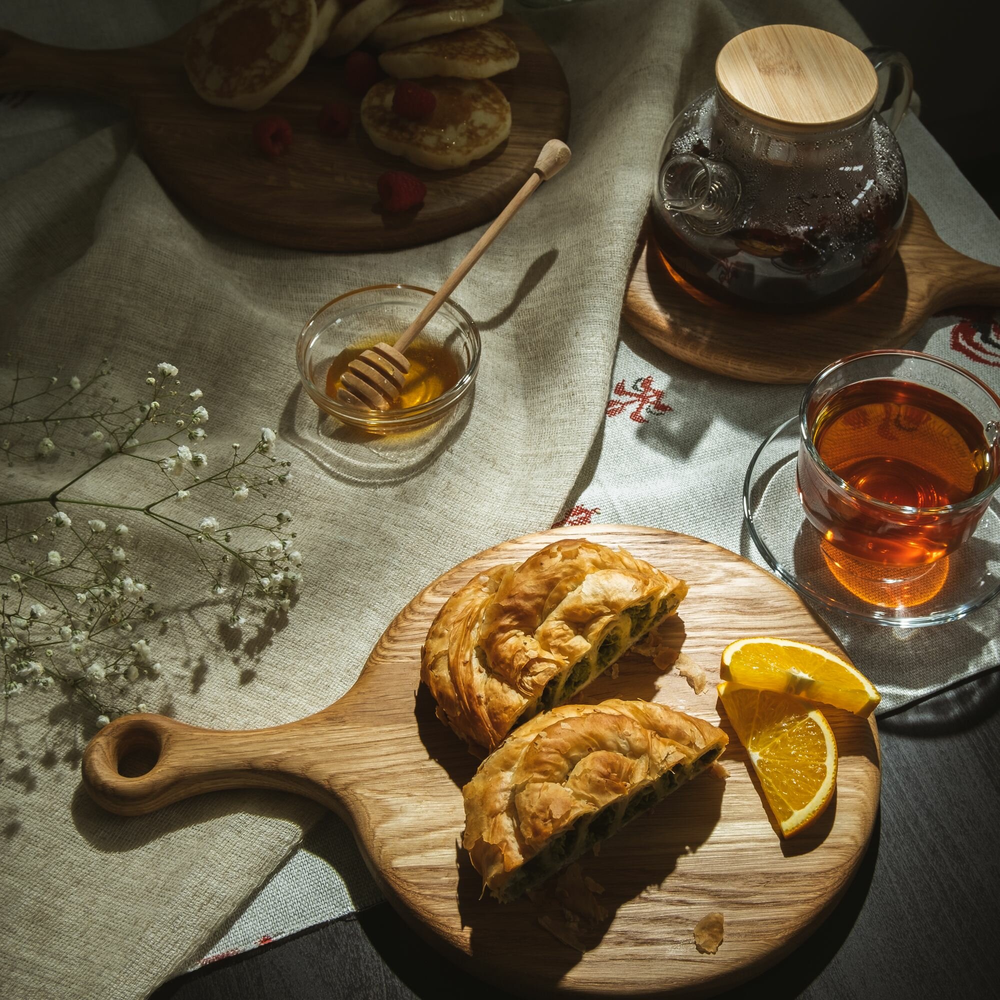 Набор из трех дубовых разделочных досок ДРЕВОДЕЛЪ "Монета" на подставке, для нарезки, сервировки и подачи интересное: