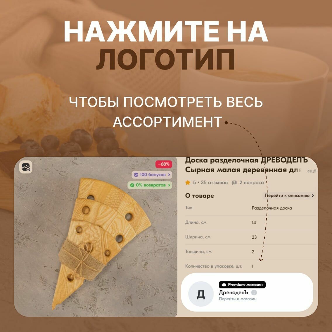 Доска разделочная древоделъ Монета деревянная для кухни с ручкой, круглая кухонная доска из дуба для нарезки, сервировки и подачи, 28 х 19 см интересное: