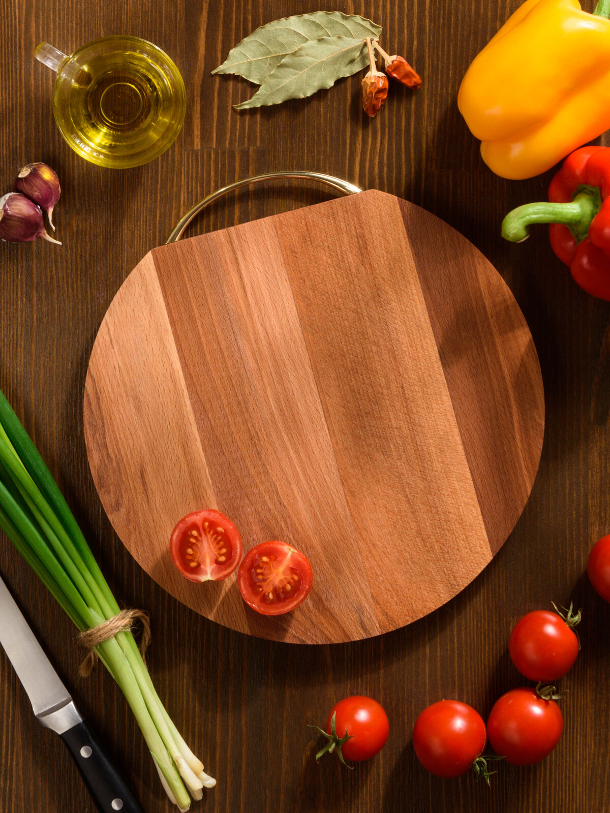 Разделочная доска KETT-UP ECO WOOD & FOOD Ø 24см круглая с ручкой деревянная интересное: