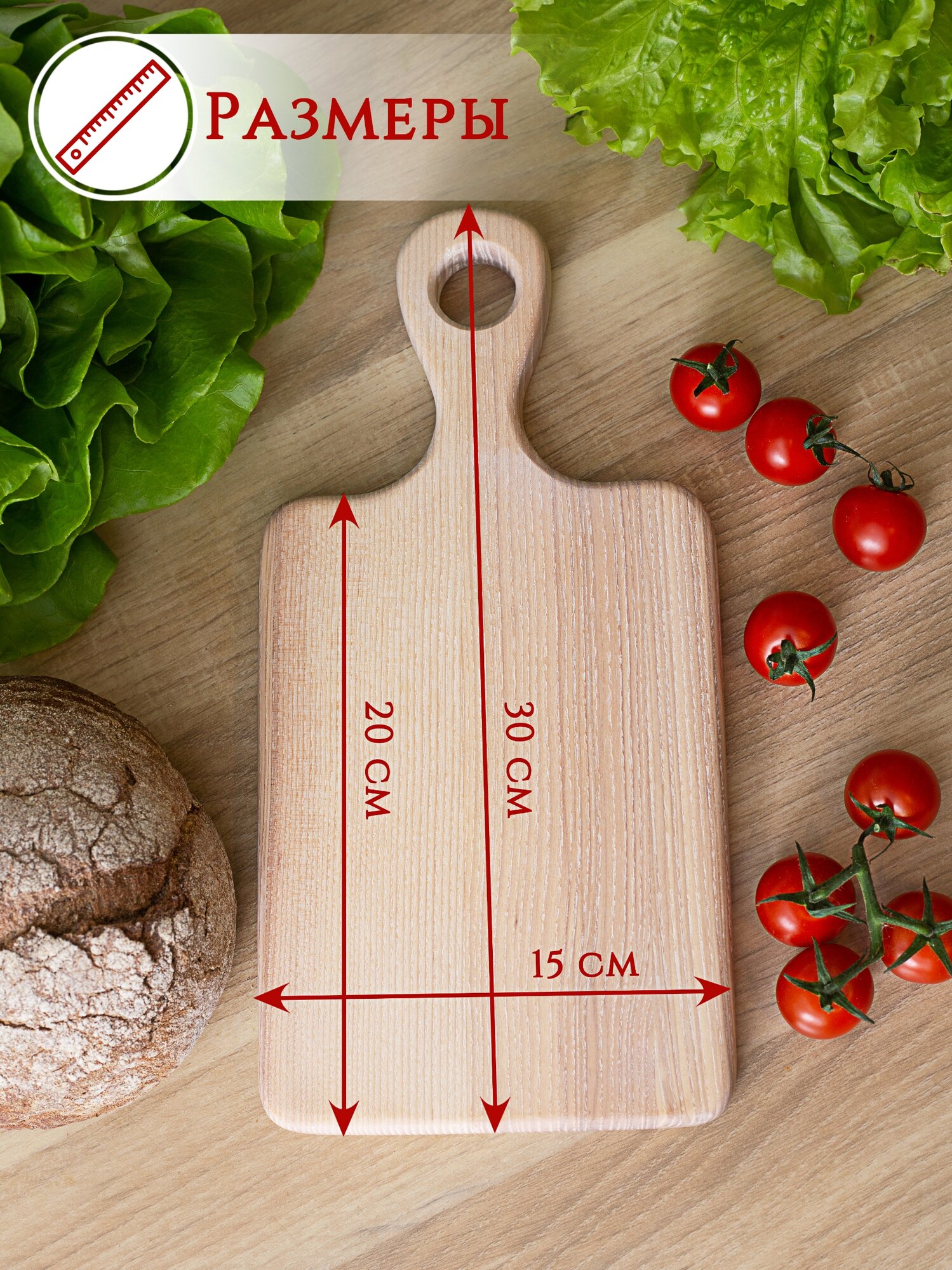 Большая прямая разделочная доска из ясеня, цвет "мел". Yasen'