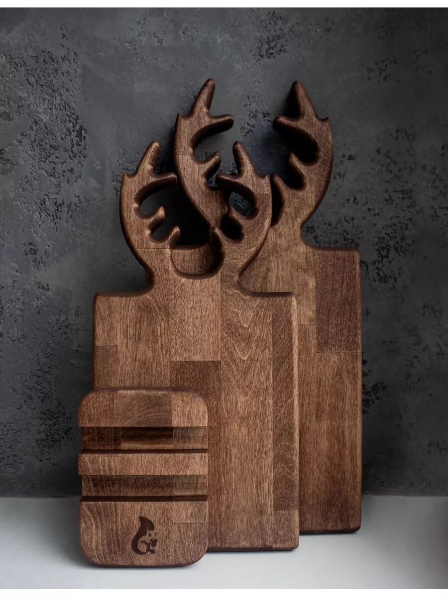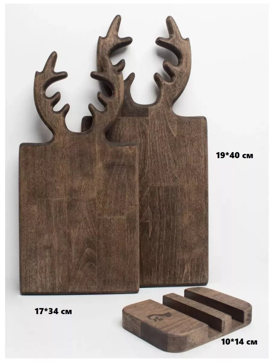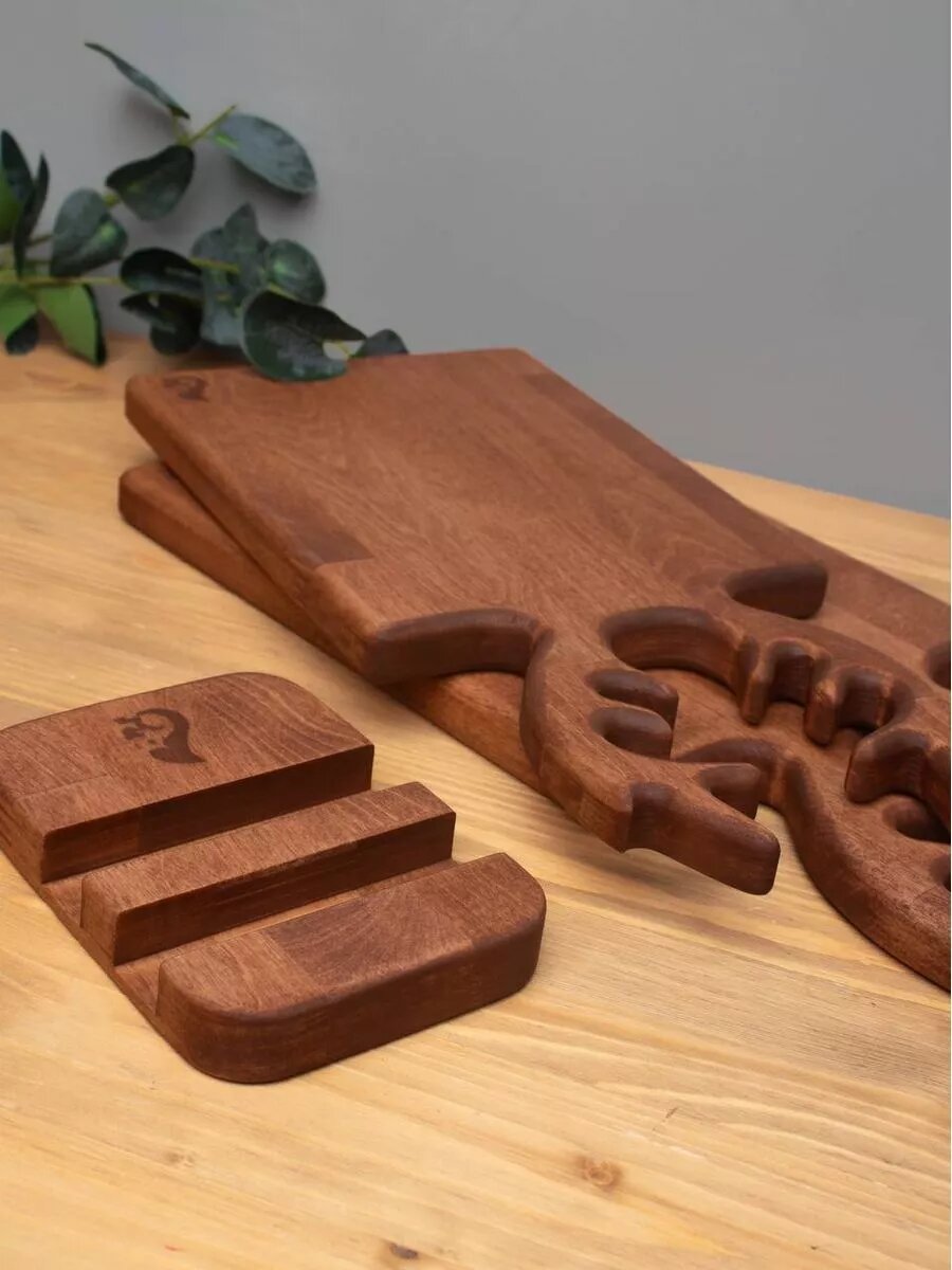 Доска разделочная деревянная для кухни набор + подставка, Набор 2 в 1