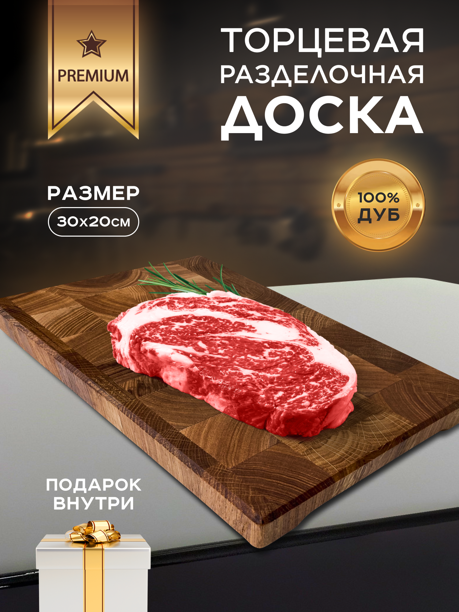 Доска разделочная торцевая деревянная большая кухонная красивая дуб