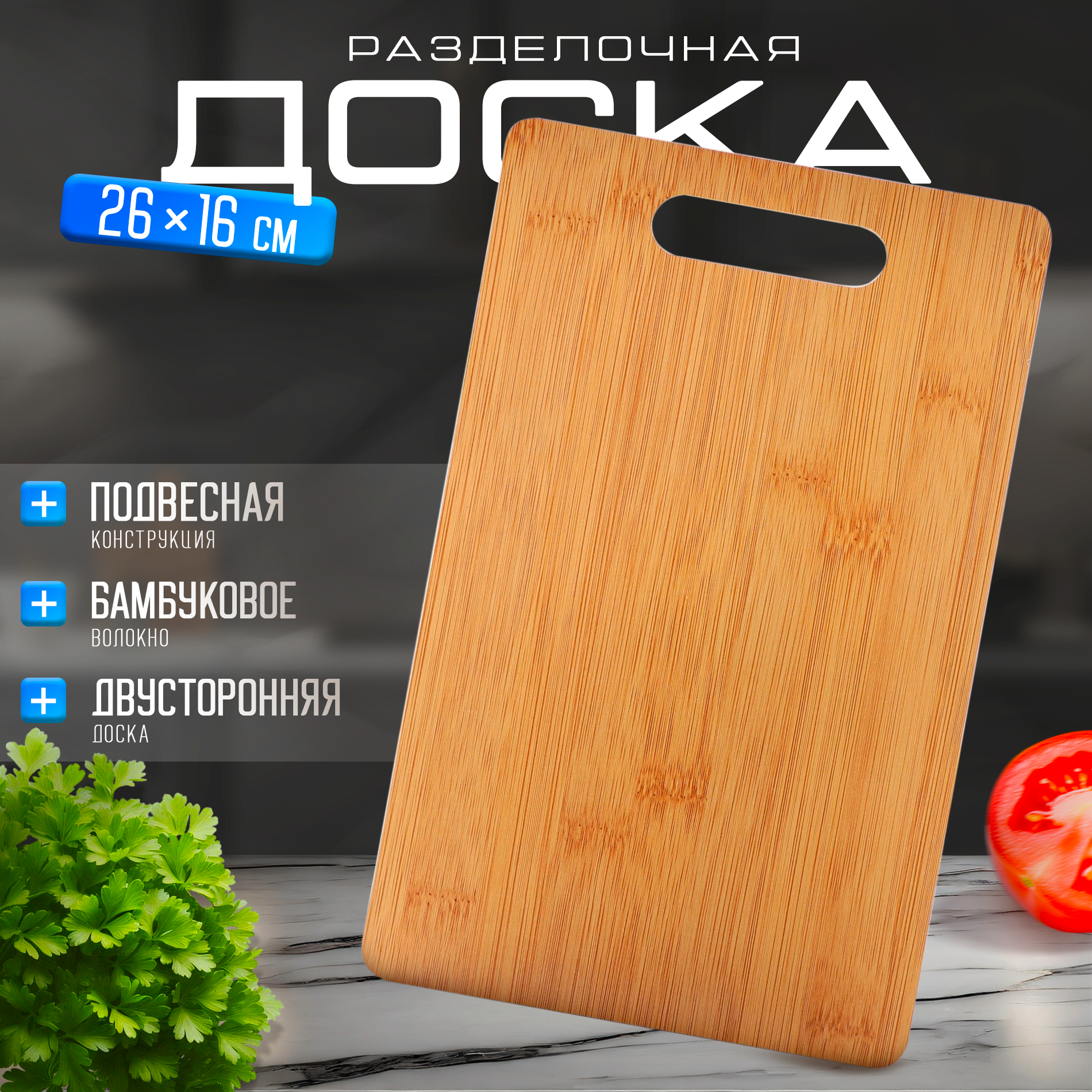 Разделочная доска "Фидан" Доляна, подвесная, бамбук, 26x16 см, коричневая интересное: