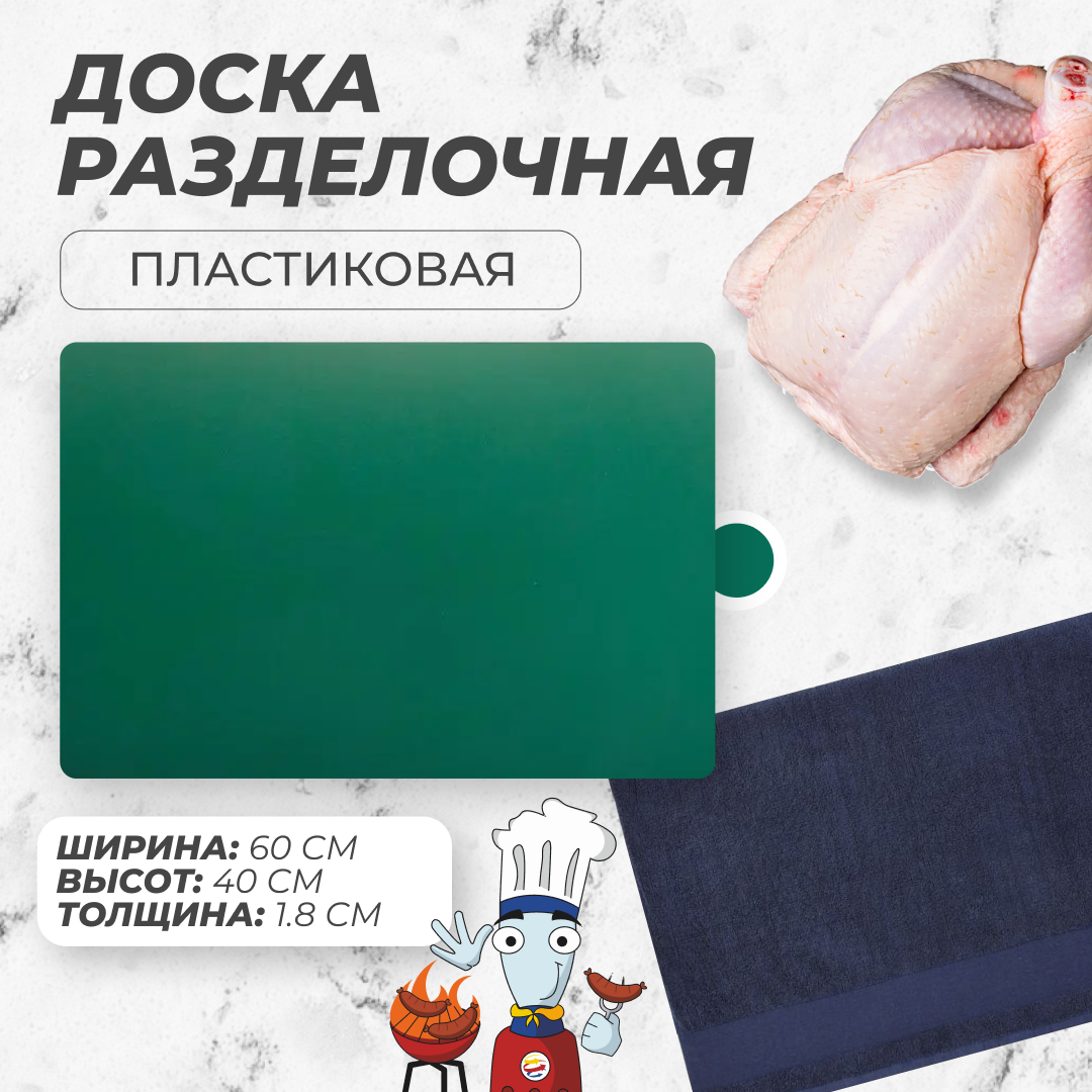 Доска разделочная Maco 600х400х18 мм, зеленая, пластик, двухсторонняя интересное: