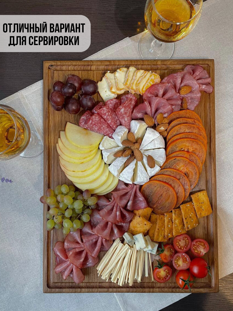 Доска разделочная деревянная для кухни набор + подставка, Набор 2 в 1