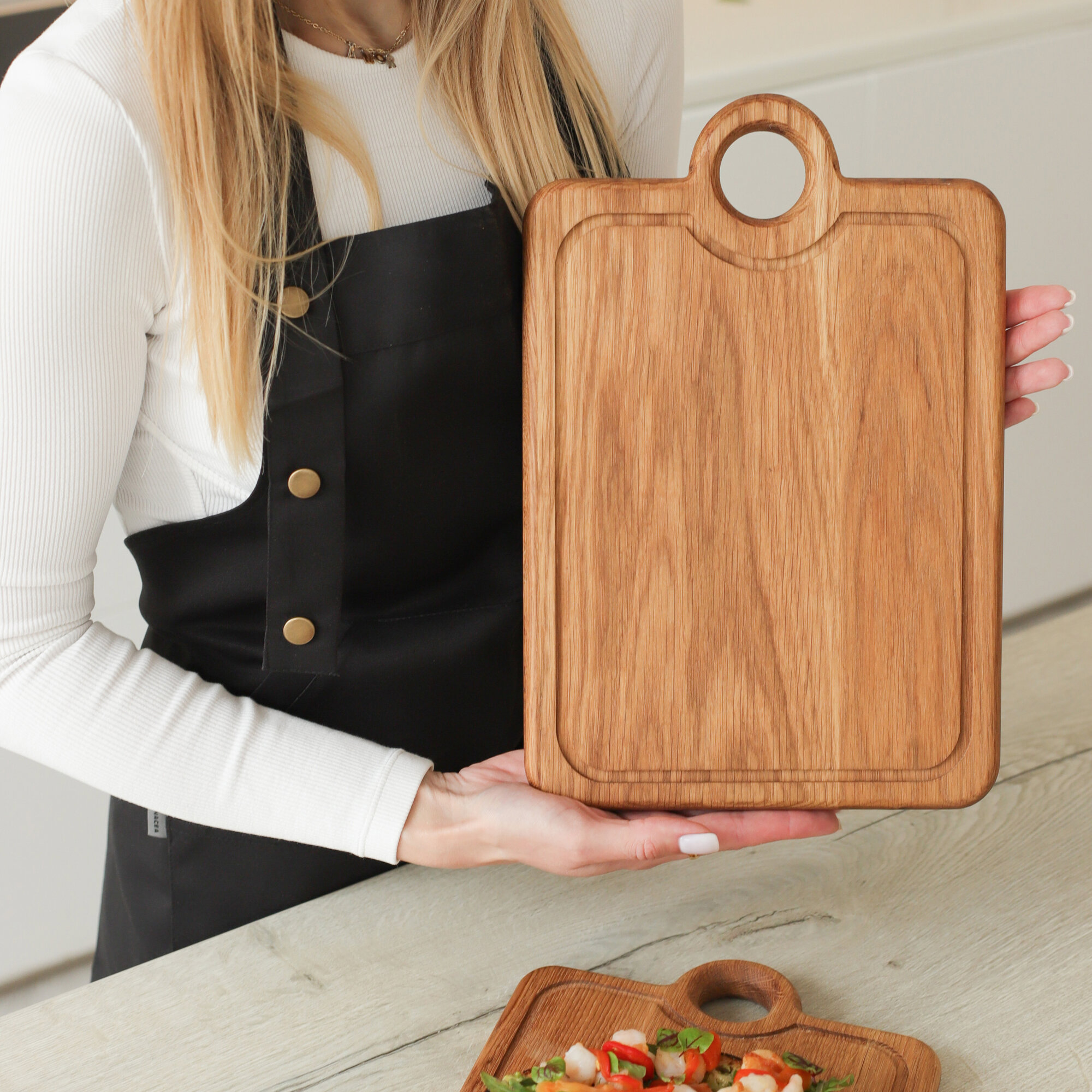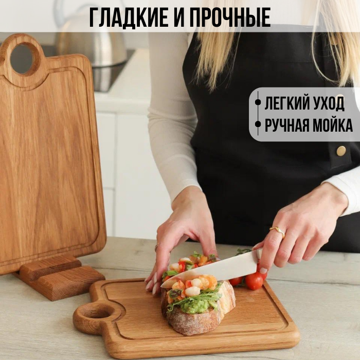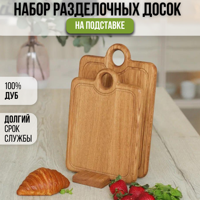 Доска разделочная деревянная для кухни набор + подставка, Набор 2 в 1