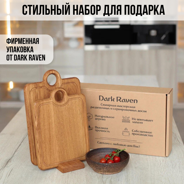 Разделочные доски Dark Raven "Дуб", дерево, 3 штуки, с подставкой, антибактериальные, черные