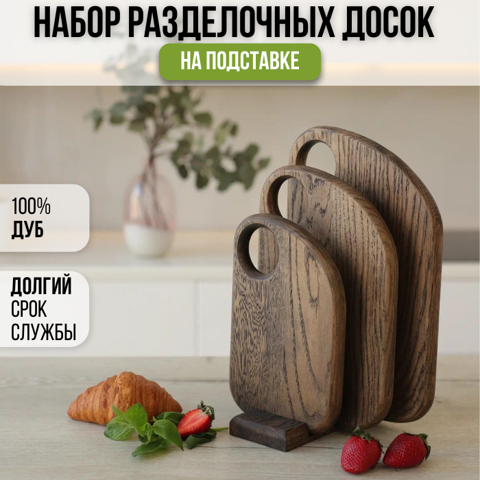 Набор разделочных досок "Dark Raven", 3 шт, на подставке, Цельный дуб