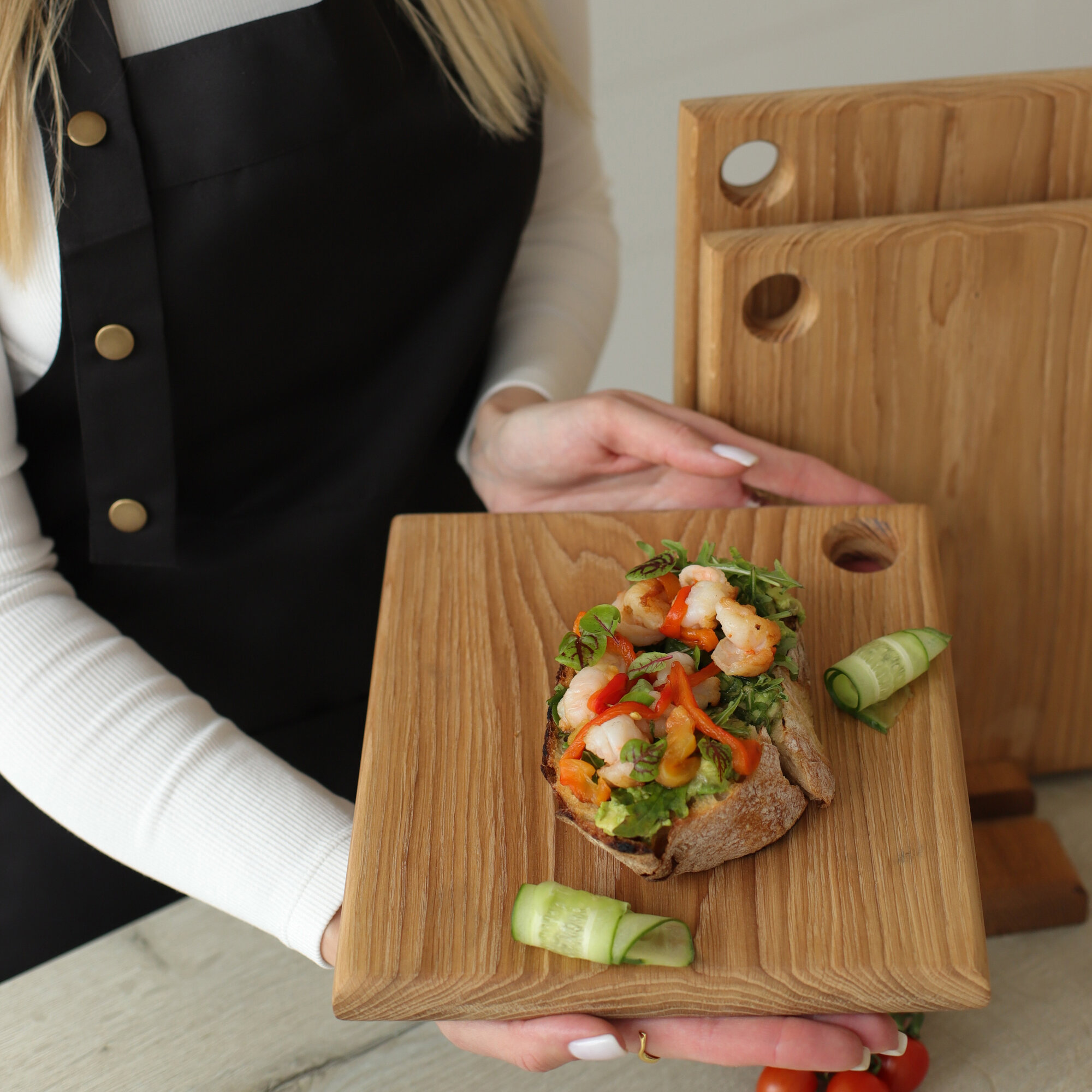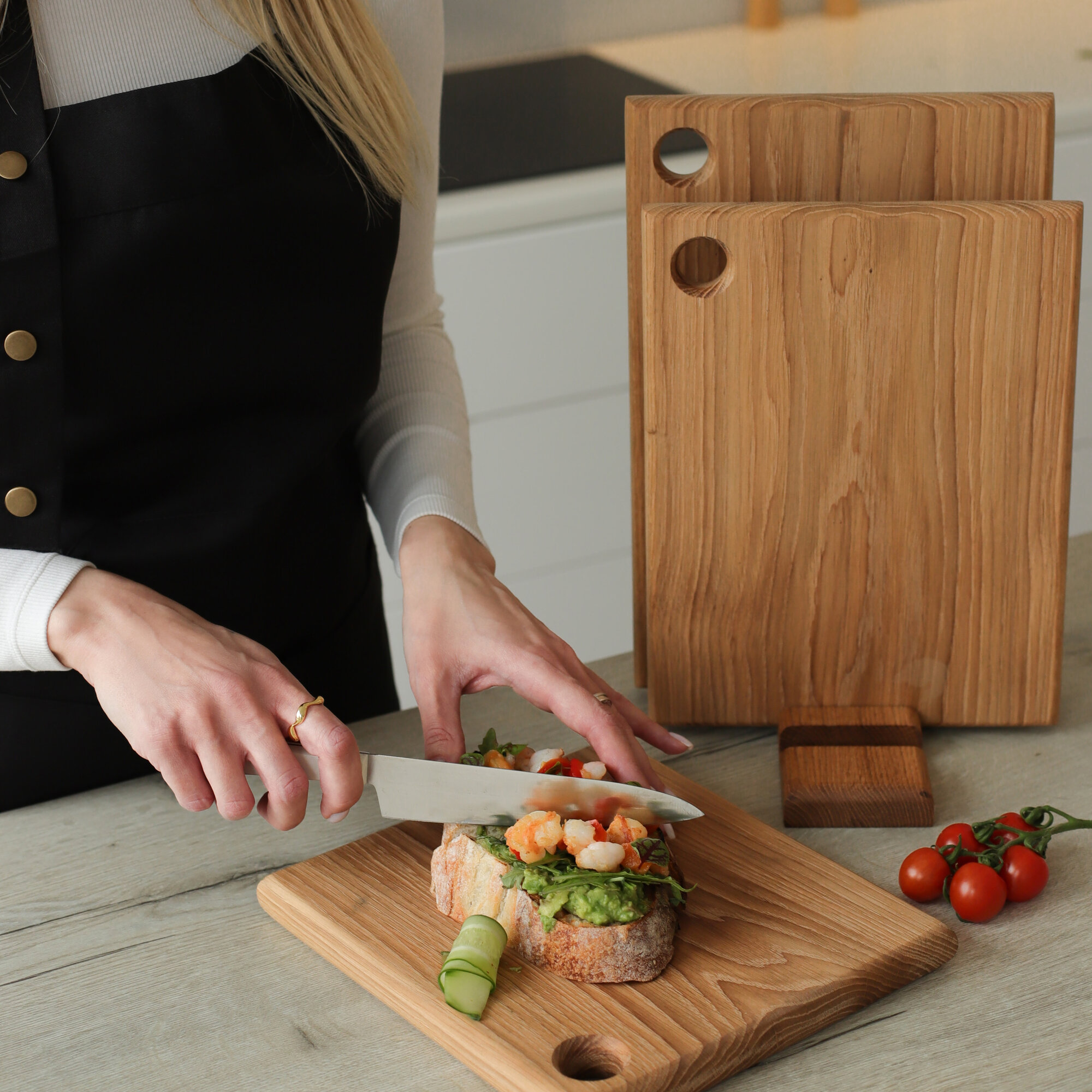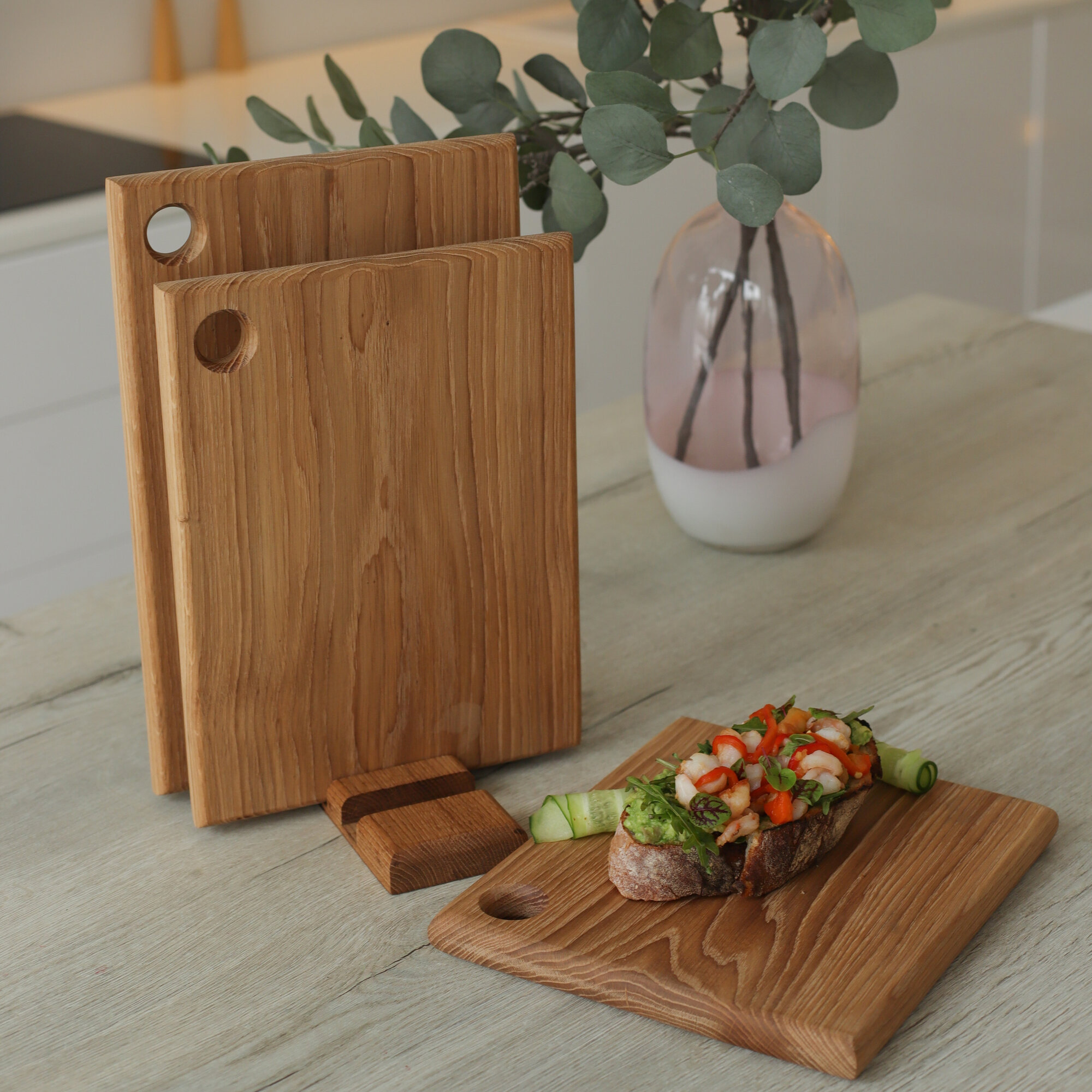Доска разделочная деревянная для кухни набор + подставка, Набор 2 в 1