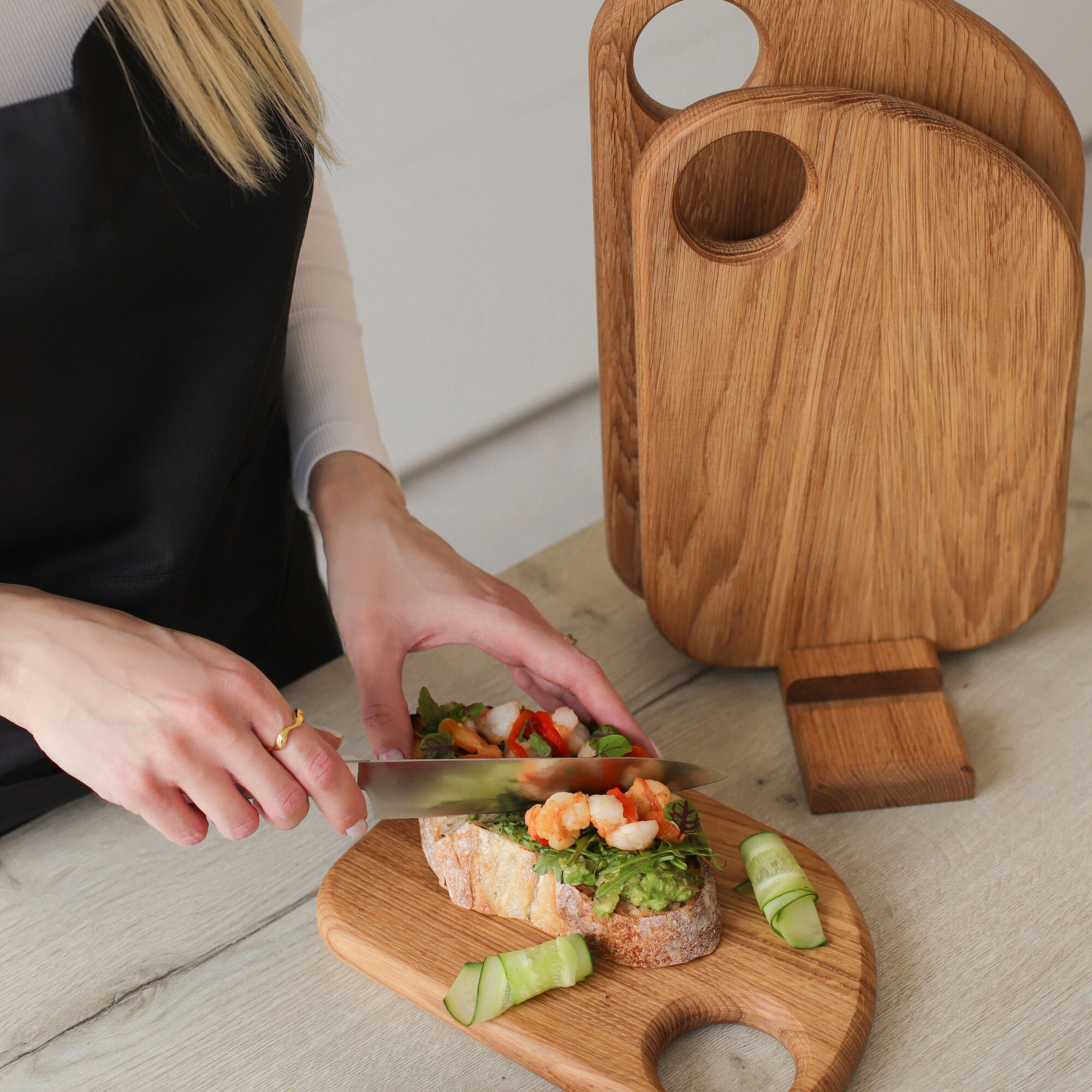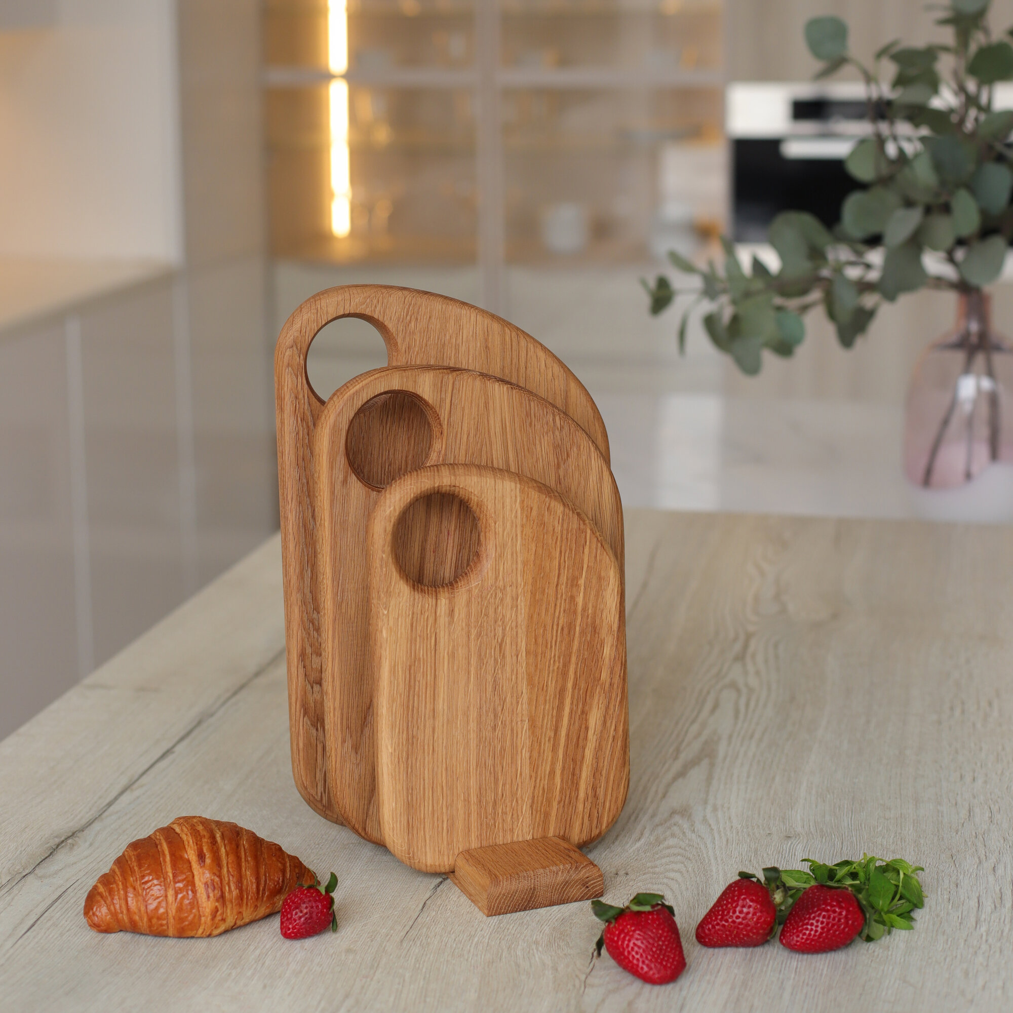 Доска разделочная деревянная для кухни набор + подставка, Набор 2 в 1