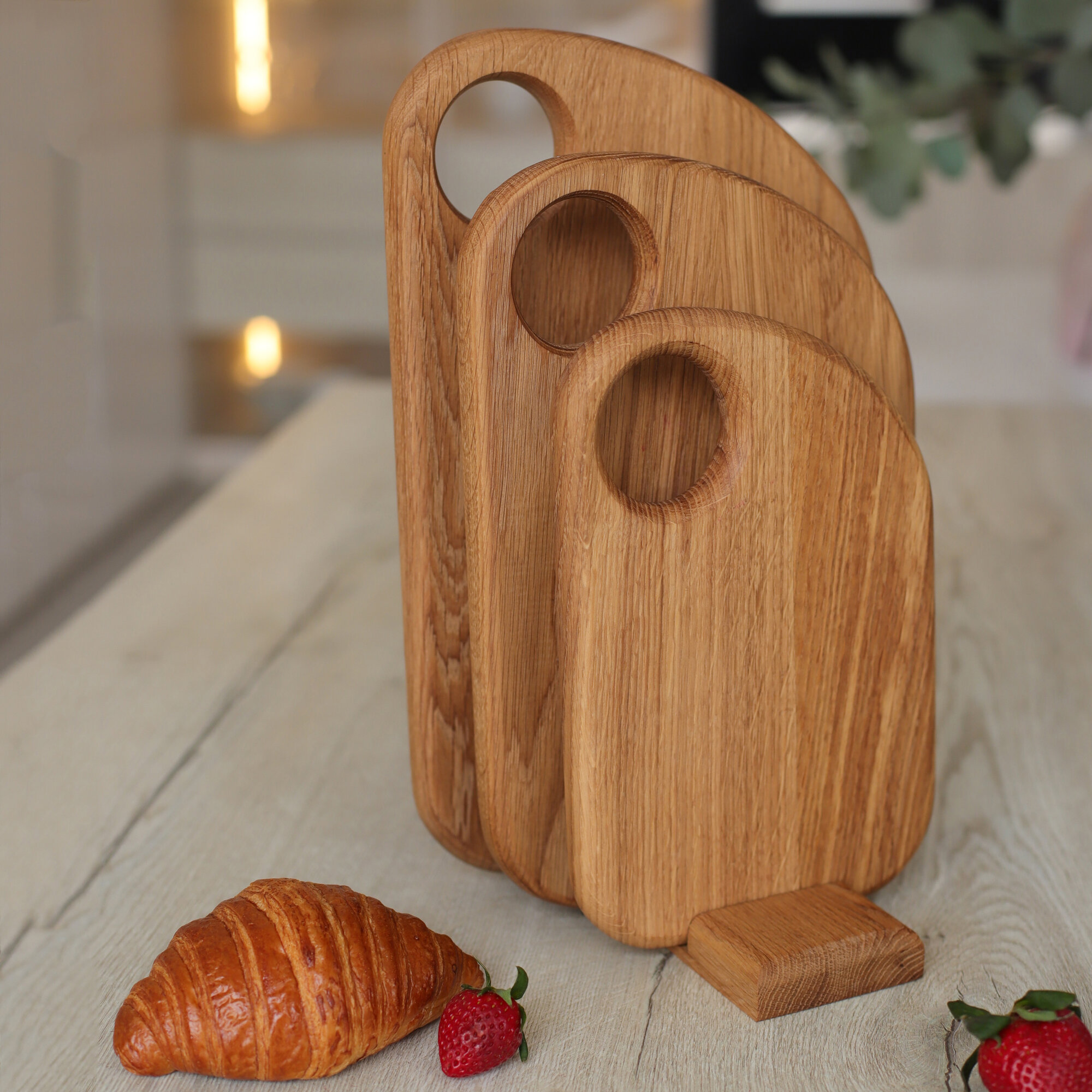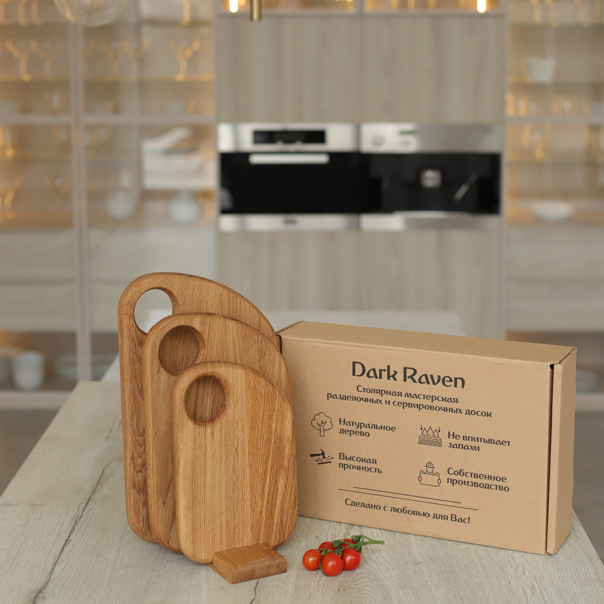 Набор разделочных досок "Dark Raven", 3 шт, на подставке, Цельный дуб