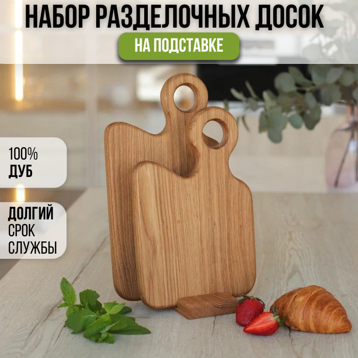 Доска разделочная деревянная для кухни набор + подставка, Набор 2 в 1