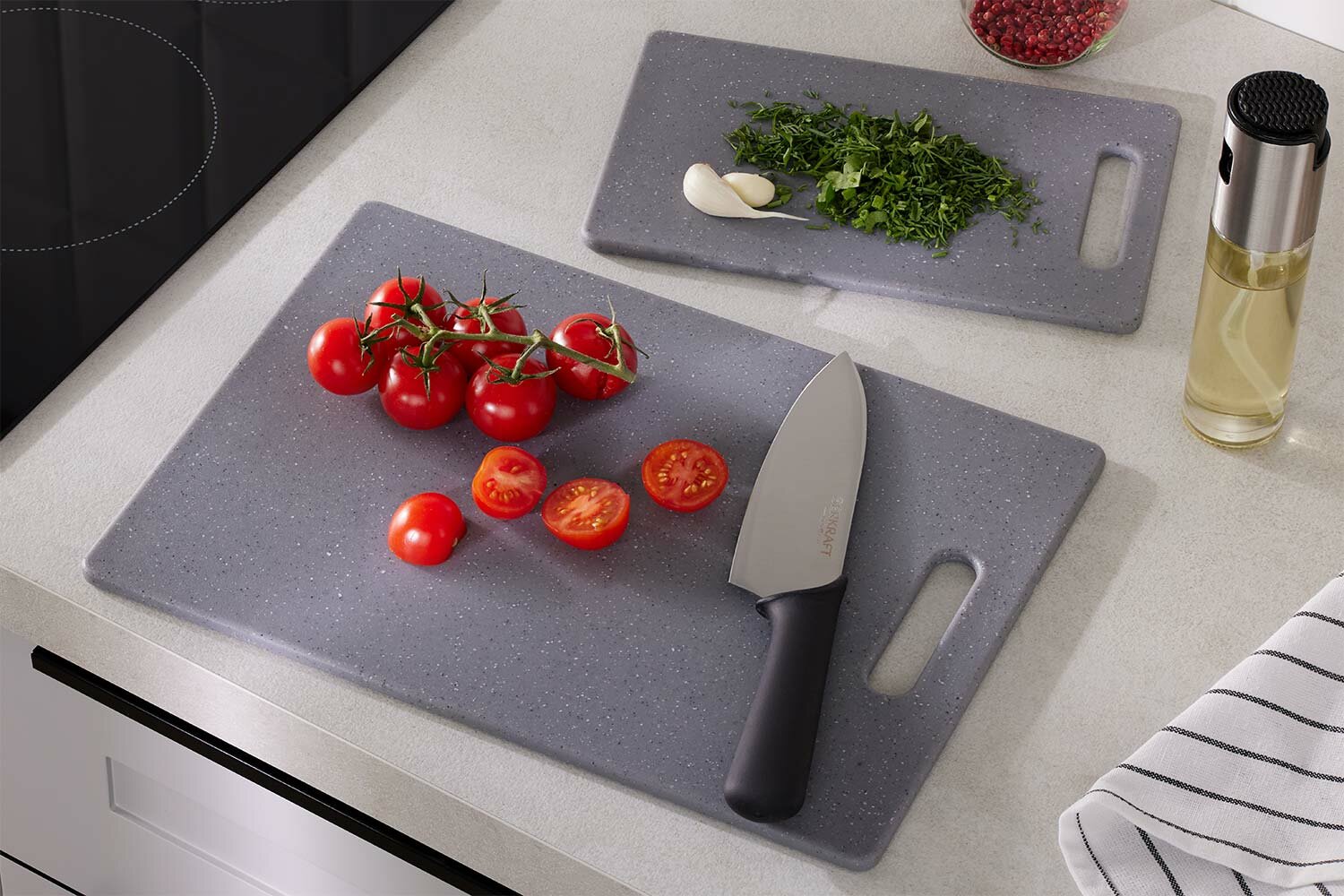 Набор разделочных досок BERKRAFT Stone, 2 шт, 36х26 см, пластиковые, цвет серый интересное: