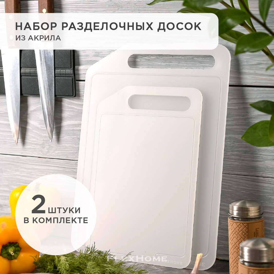 Купить Доска разделочная пластиковая FlexHome, набор 2 шт, цвет белый