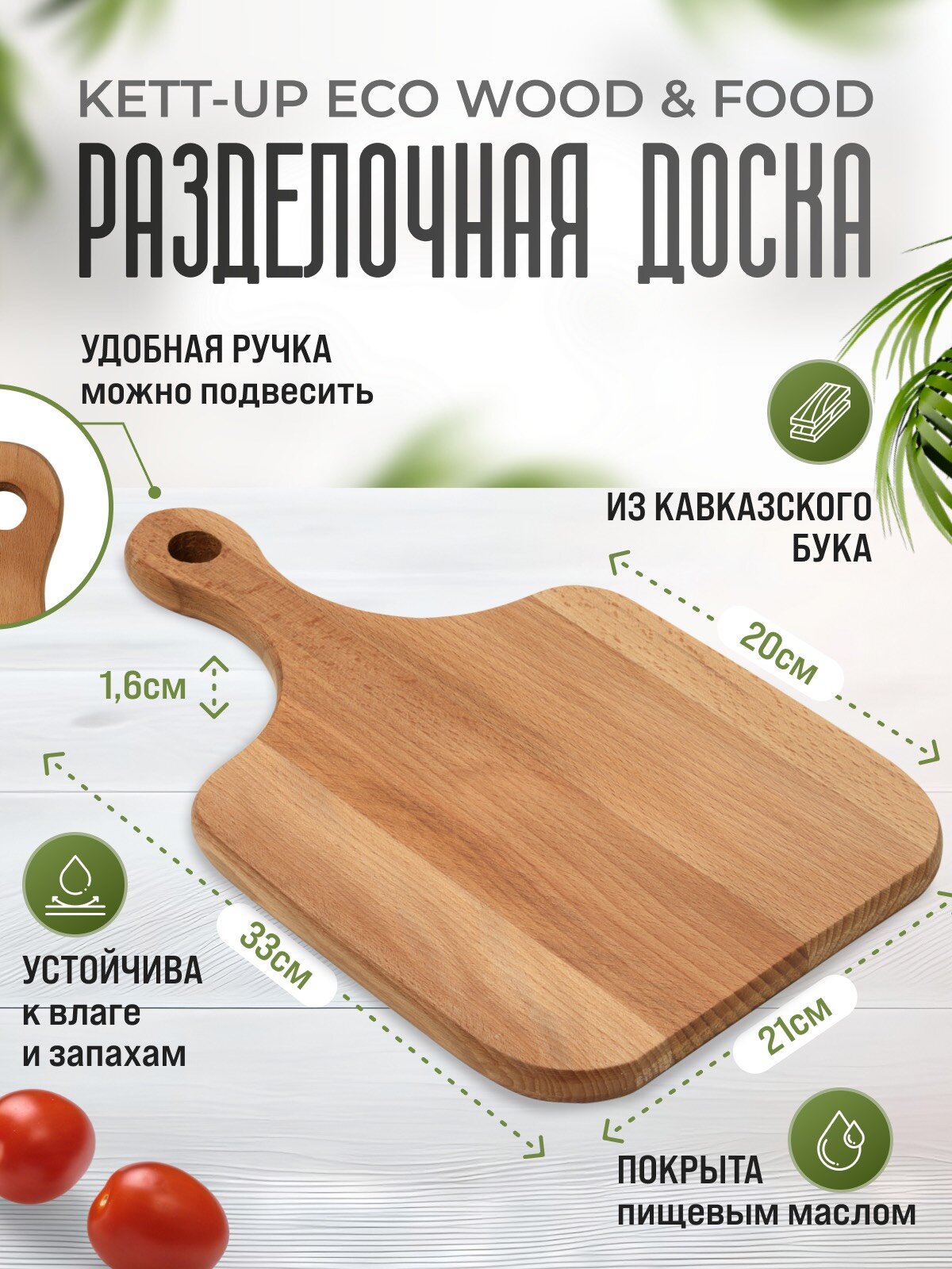 Разделочная доска KETT-UP ECO WOOD & FOOD 21*33см классическая деревянная интересное: