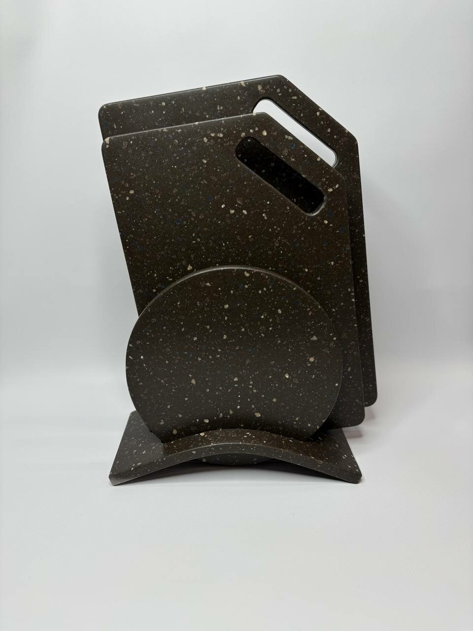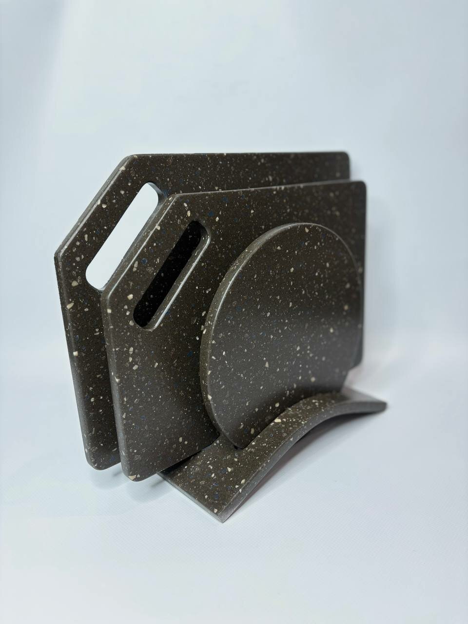 Купить Набор разделочных досок " Коричневый изумруд" из искусственного камня 3 в 1 на подставке