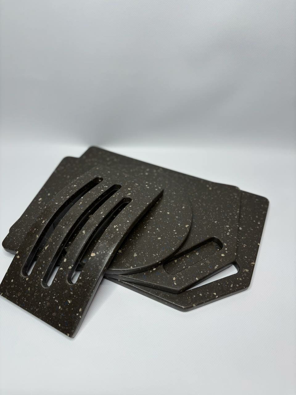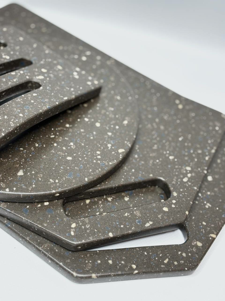Набор разделочных досок " Коричневый изумруд" из искусственного камня 3 в 1 на подставке интересное: