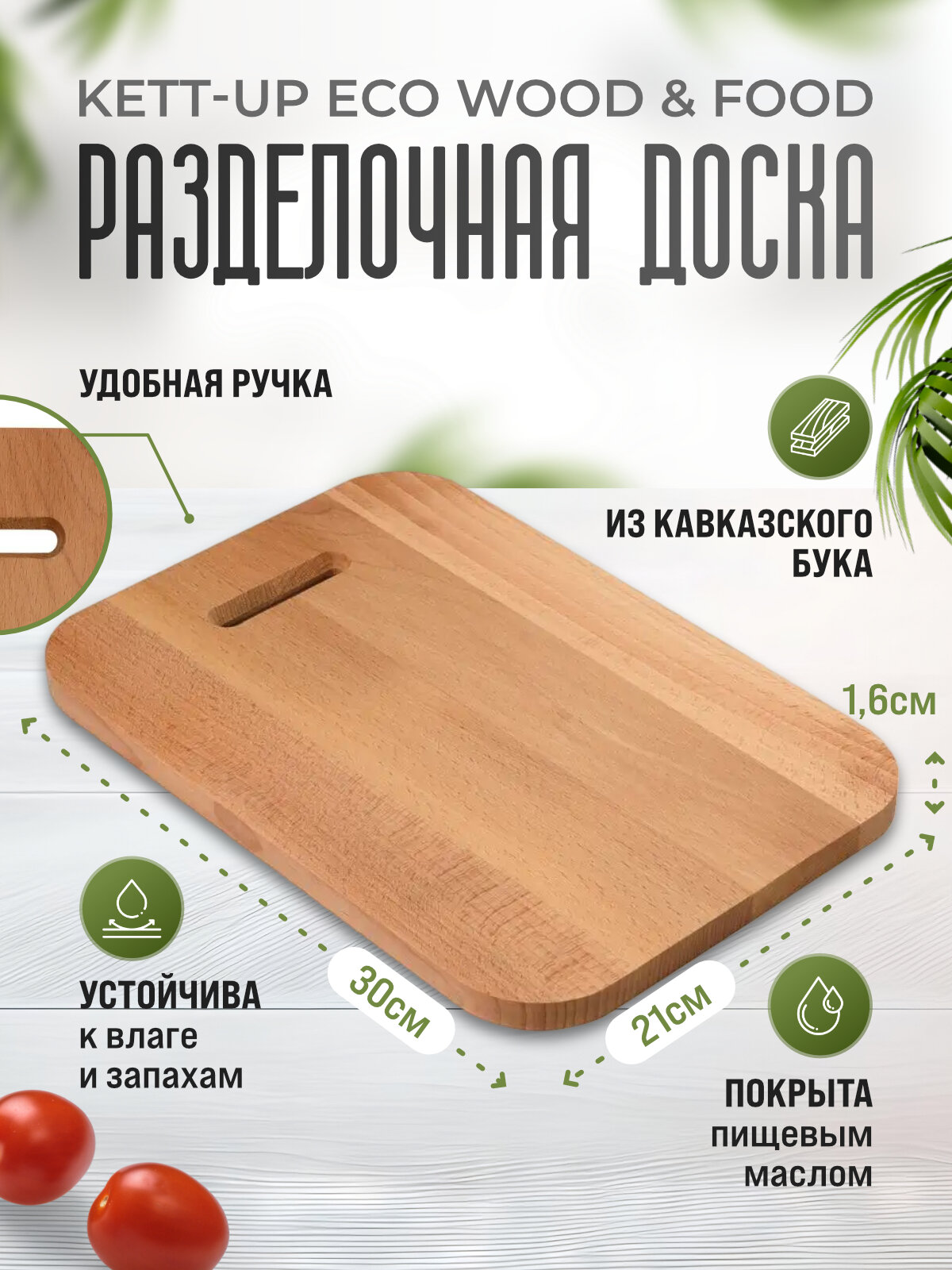 Разделочная доска KETT-UP ECO WOOD & FOOD 21*30см деревянная гладкая с прорезью интересное: