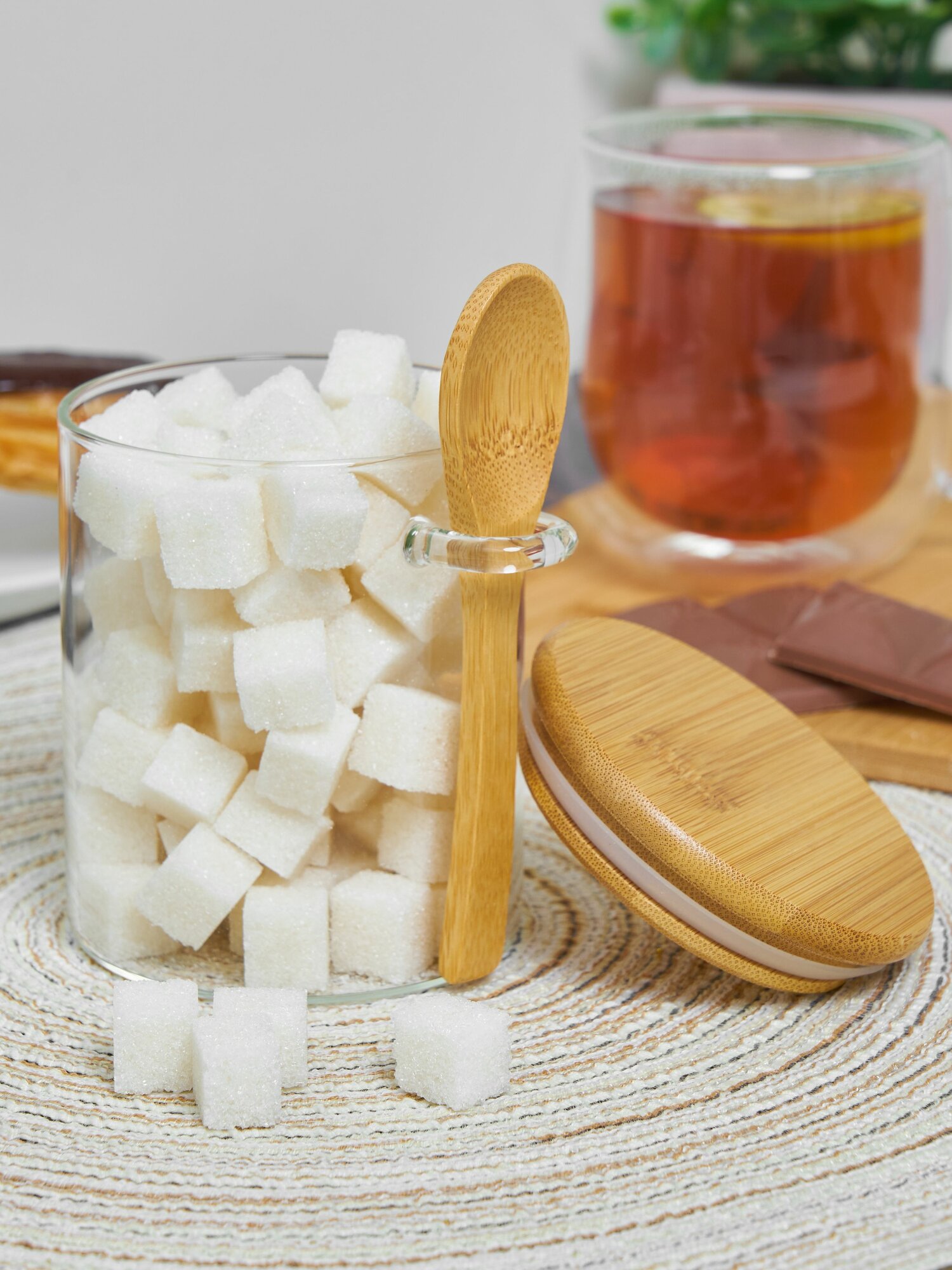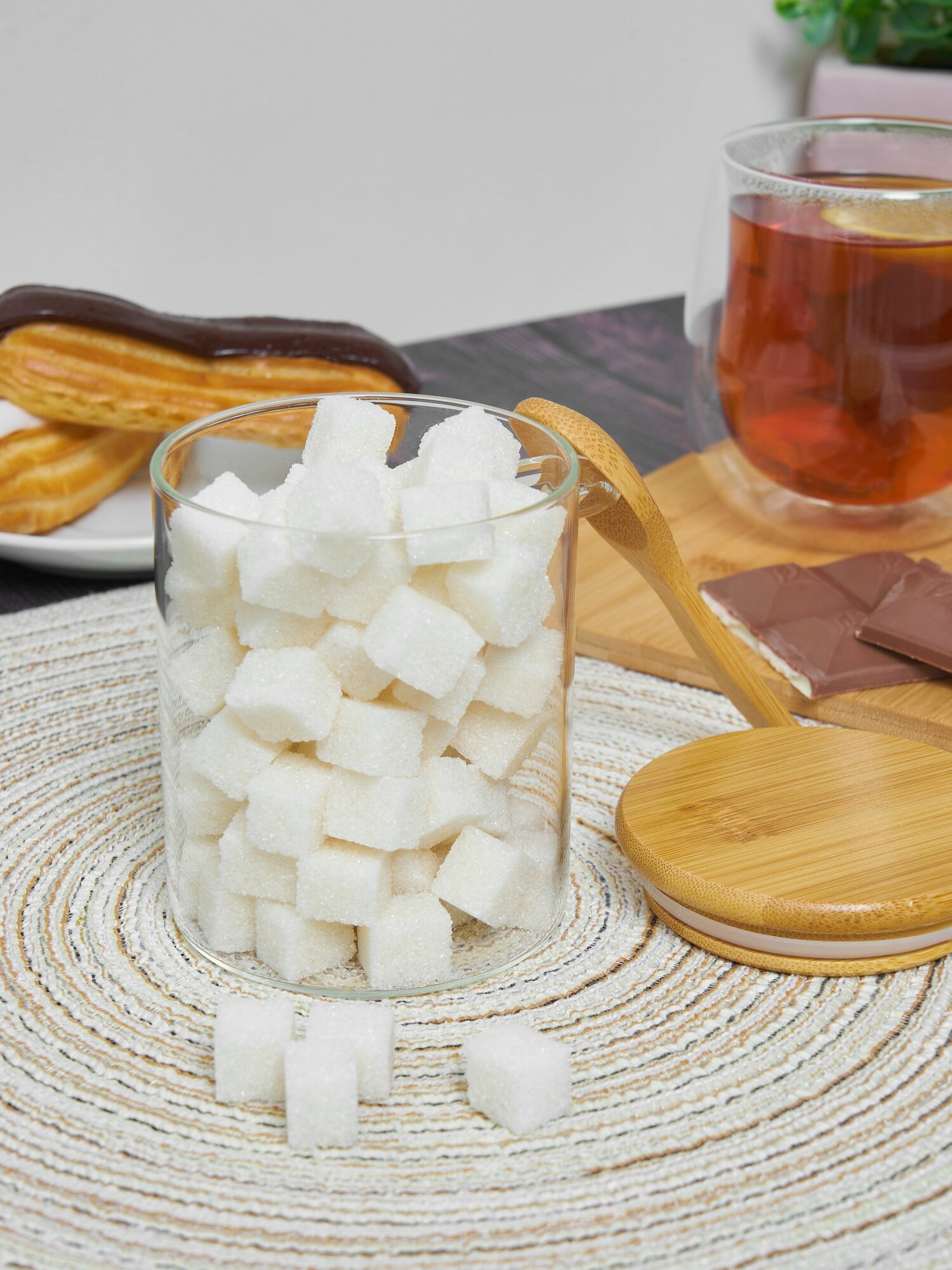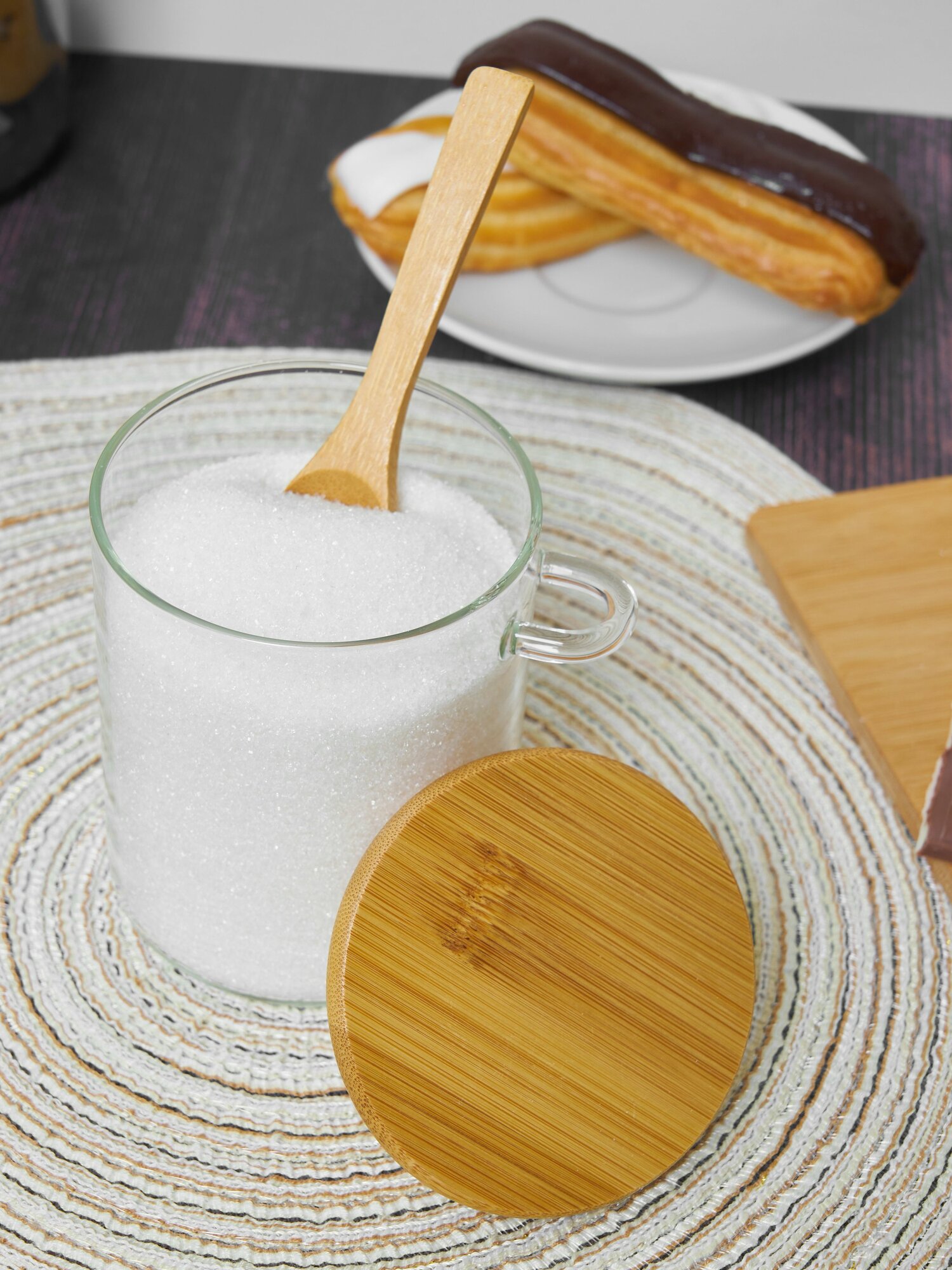 Купить Сахарница стеклянная Kalinka с бамбуковой крышкой и ложкой, 470 мл