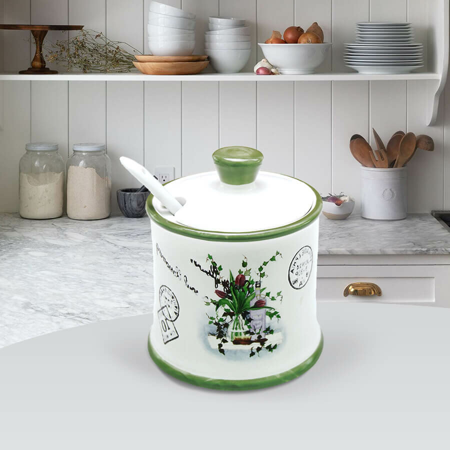 Сахарница Maestro MR-20005-09 с ложкой, керамика "Holiday in Porto" 0.3л