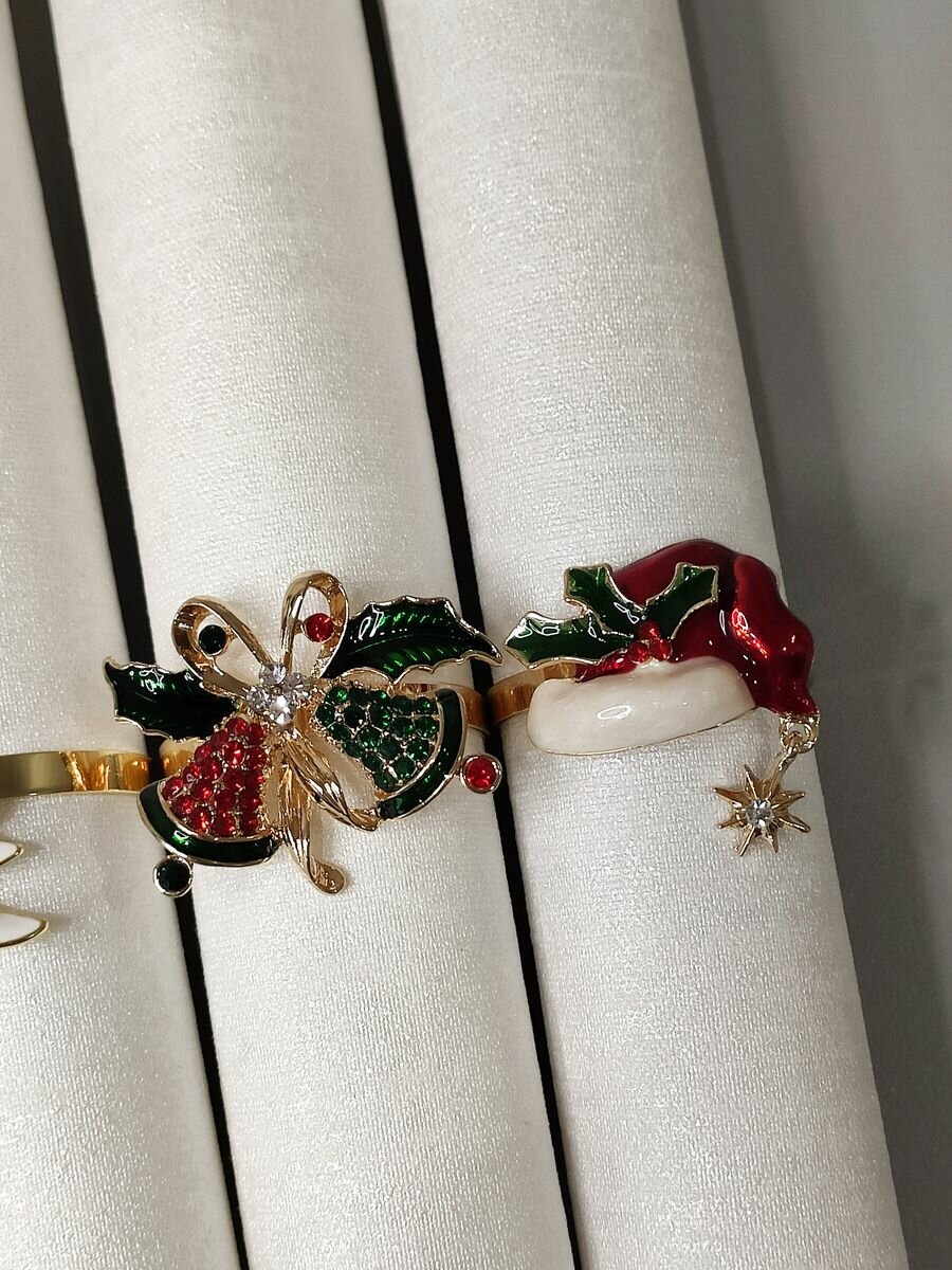Кольца 4 шт для салфеток набор металлический, золотистый цвет с эмалью интересное: