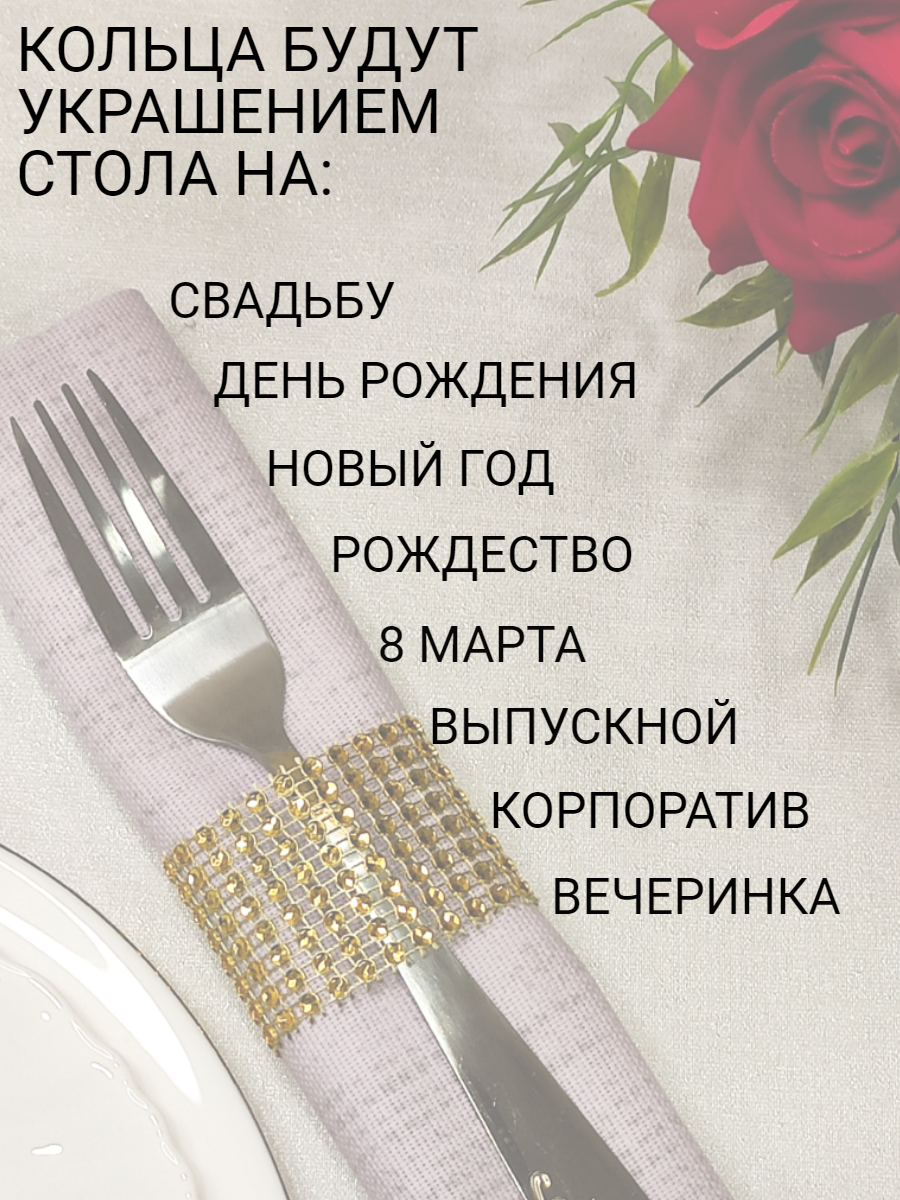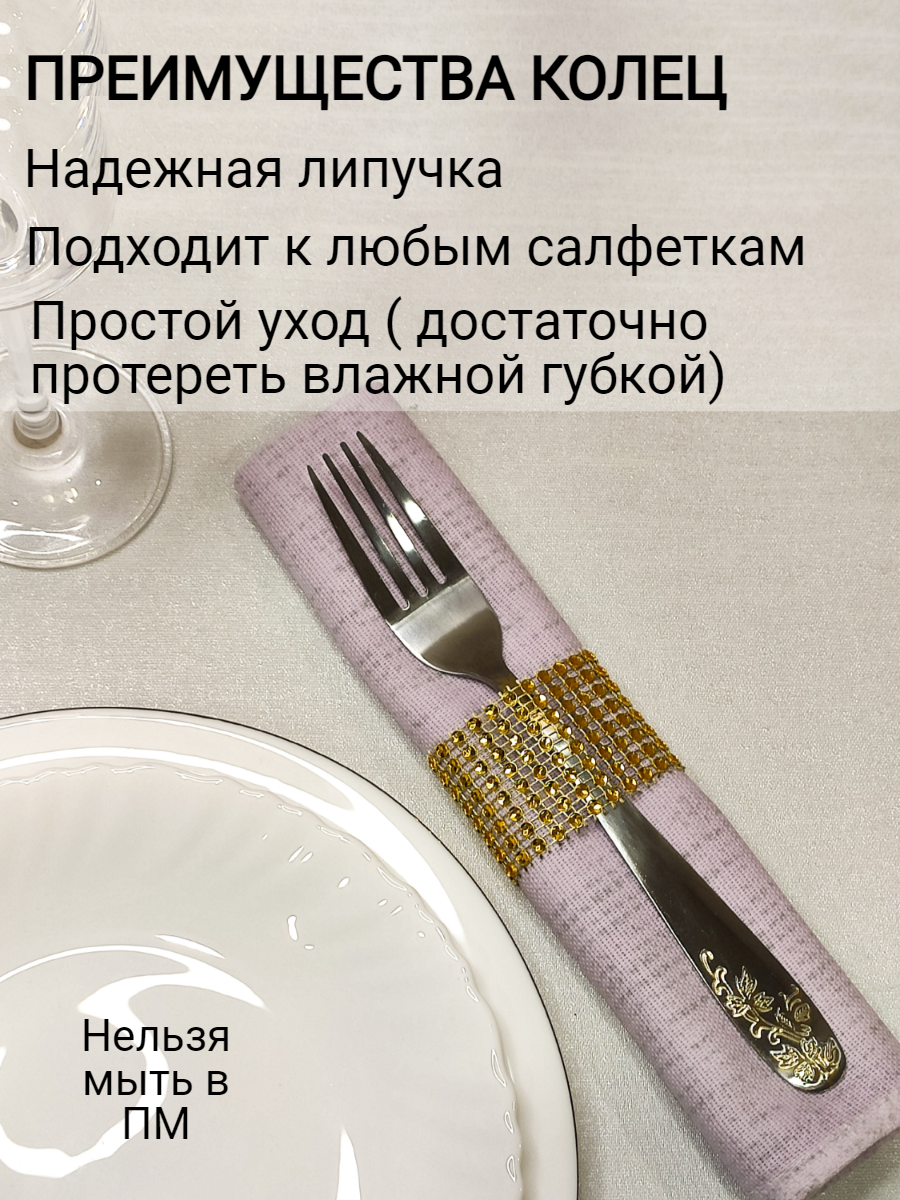 Кольца 10 шт для салфеток гибкие на липучке золотистого цвета интересное: