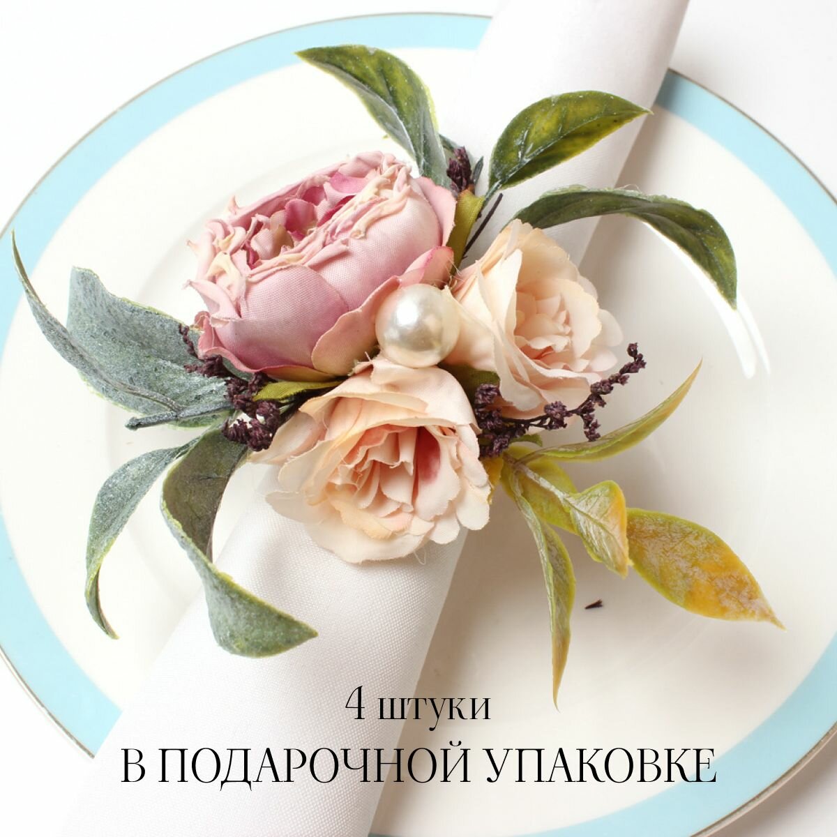 Кольца для салфеток MAVO HOME, сервировка стола. Цветы. Набор 4шт интересное: