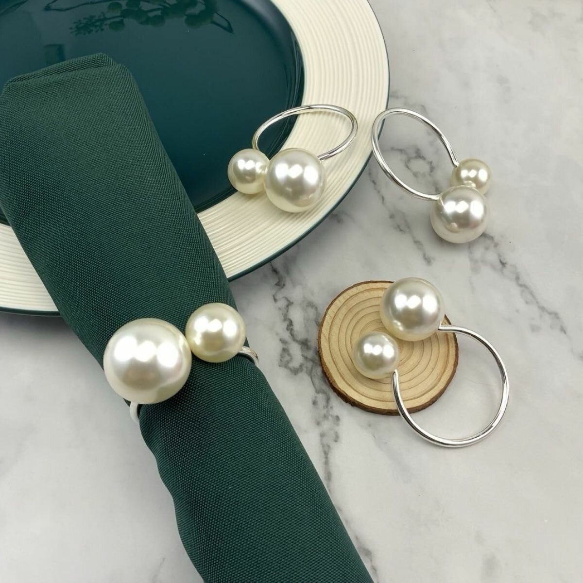 Кольца для салфеток MAVO HOME, сервировка стола. Жемчуг серебро. Набор 6 шт интересное: