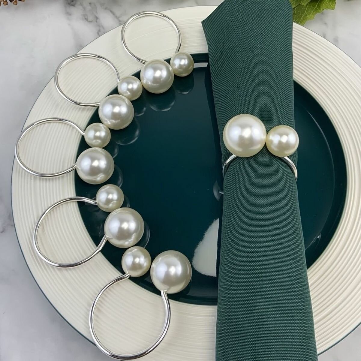 Купить Кольца для салфеток MAVO HOME, сервировка стола. Жемчуг серебро. Набор 6 шт