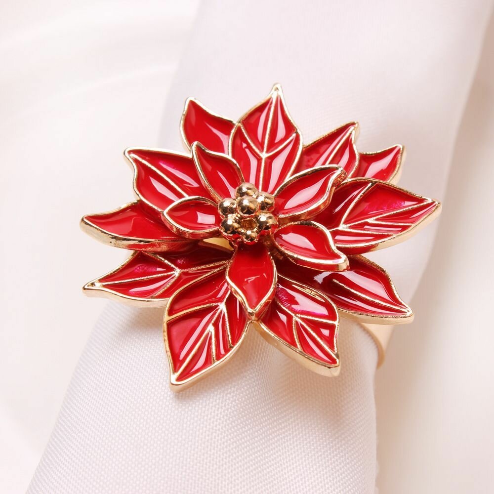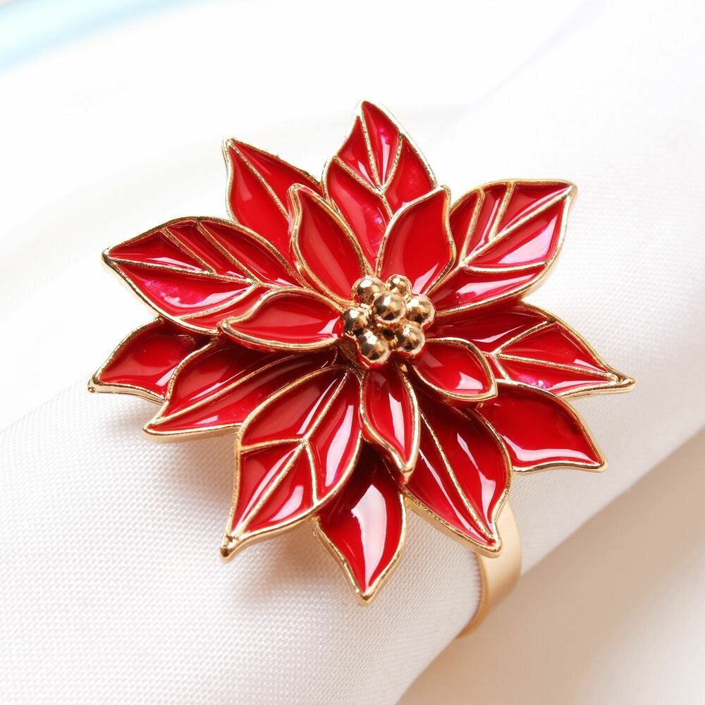 Купить Кольца для салфеток MAVO HOME, сервировка стола. Цветок красный. Набор 4шт