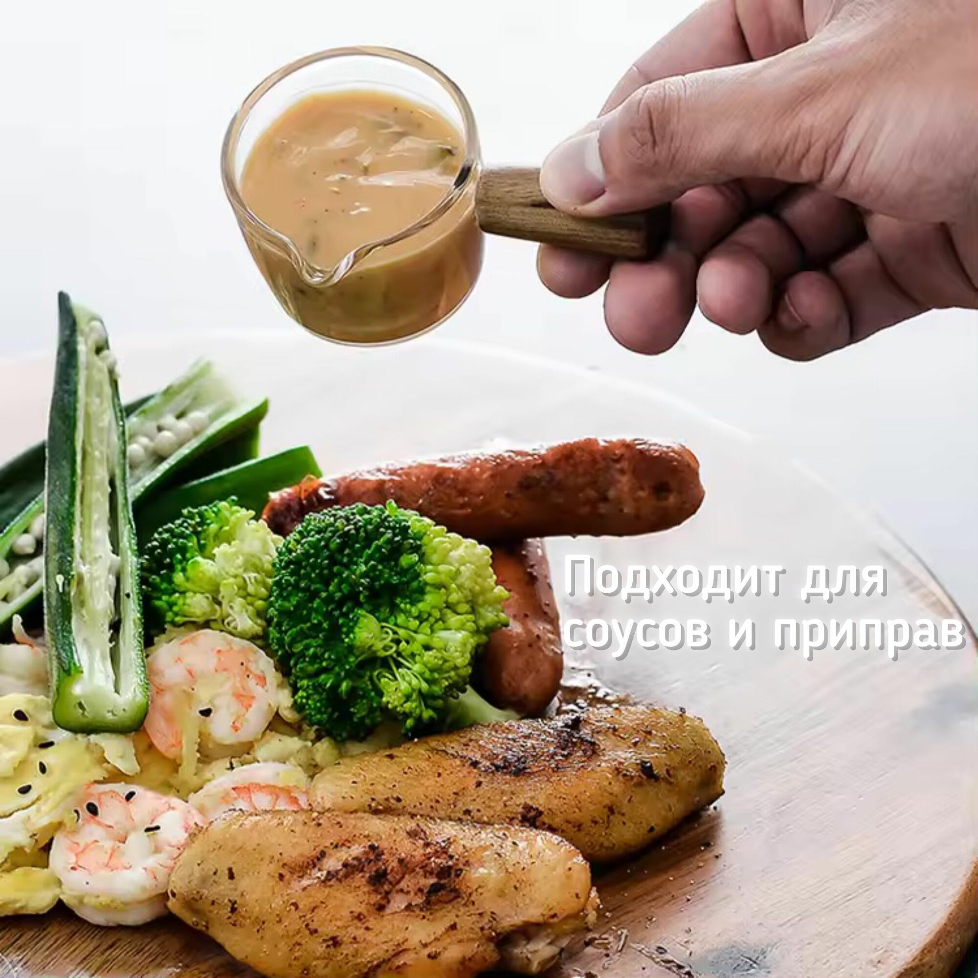 Соусник из жаропрочного стекла с деревянной ручкой HoyD 100 мл. интересное: