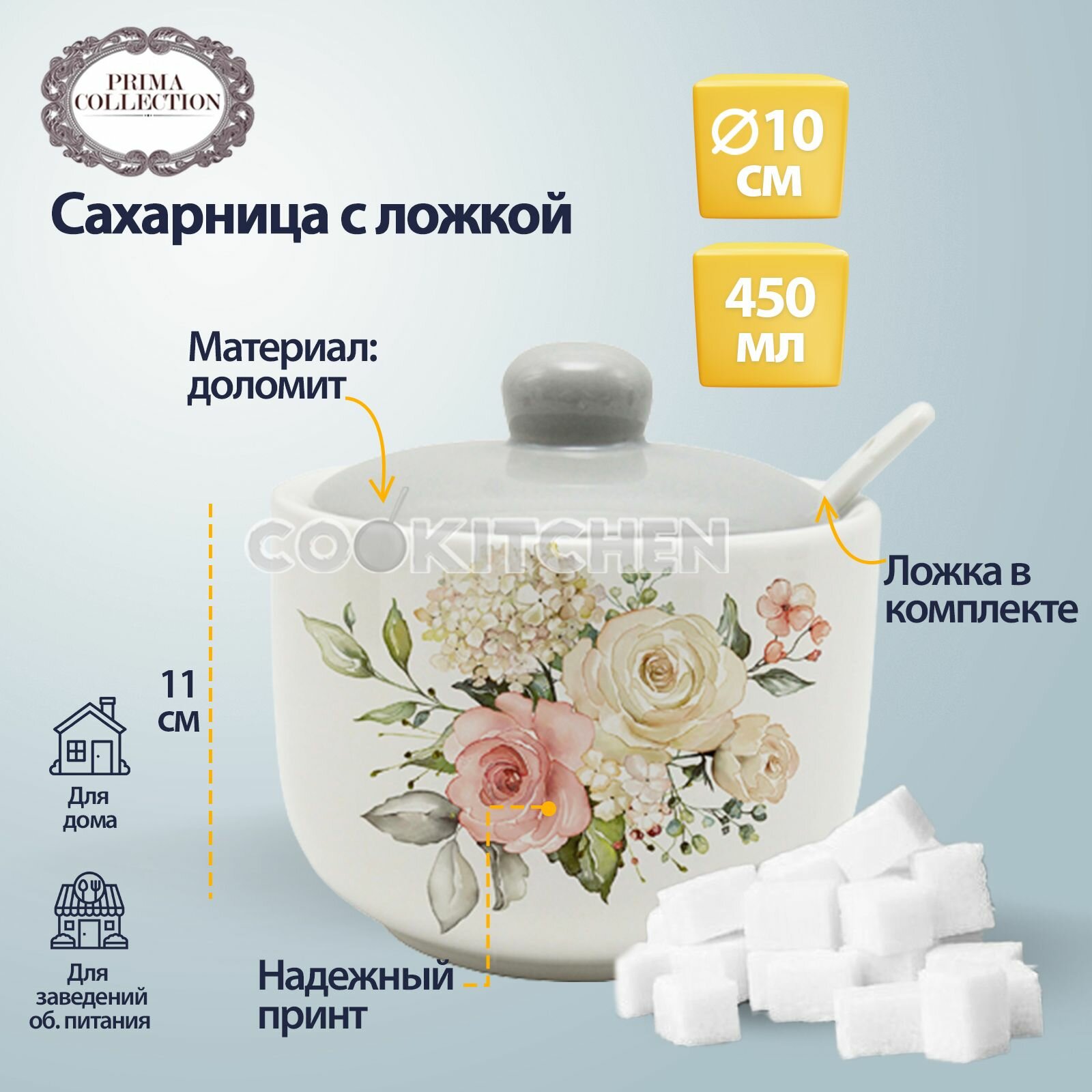 Сахарница PRIMA COLLECTION "Белла Анна" 450 мл, с крышкой и ложкой из доломита, с упаковкой интересное: