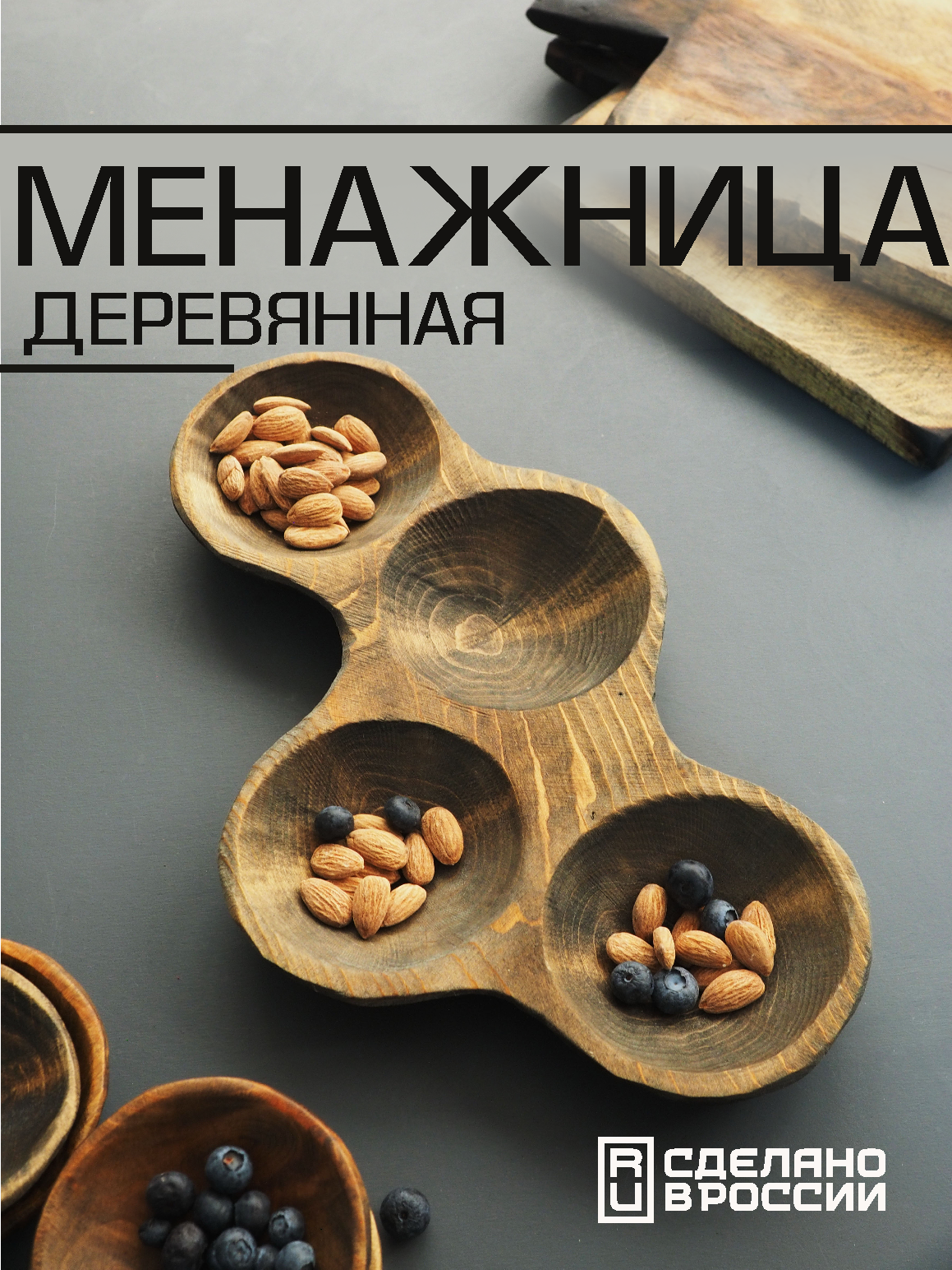 Деревянная секционная тарелка, менажница для сервировки орехов и закусок интересное:
