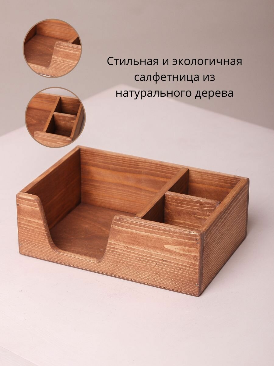 Салфетница на стол с подставкой под соль и перец деревянная кухонная