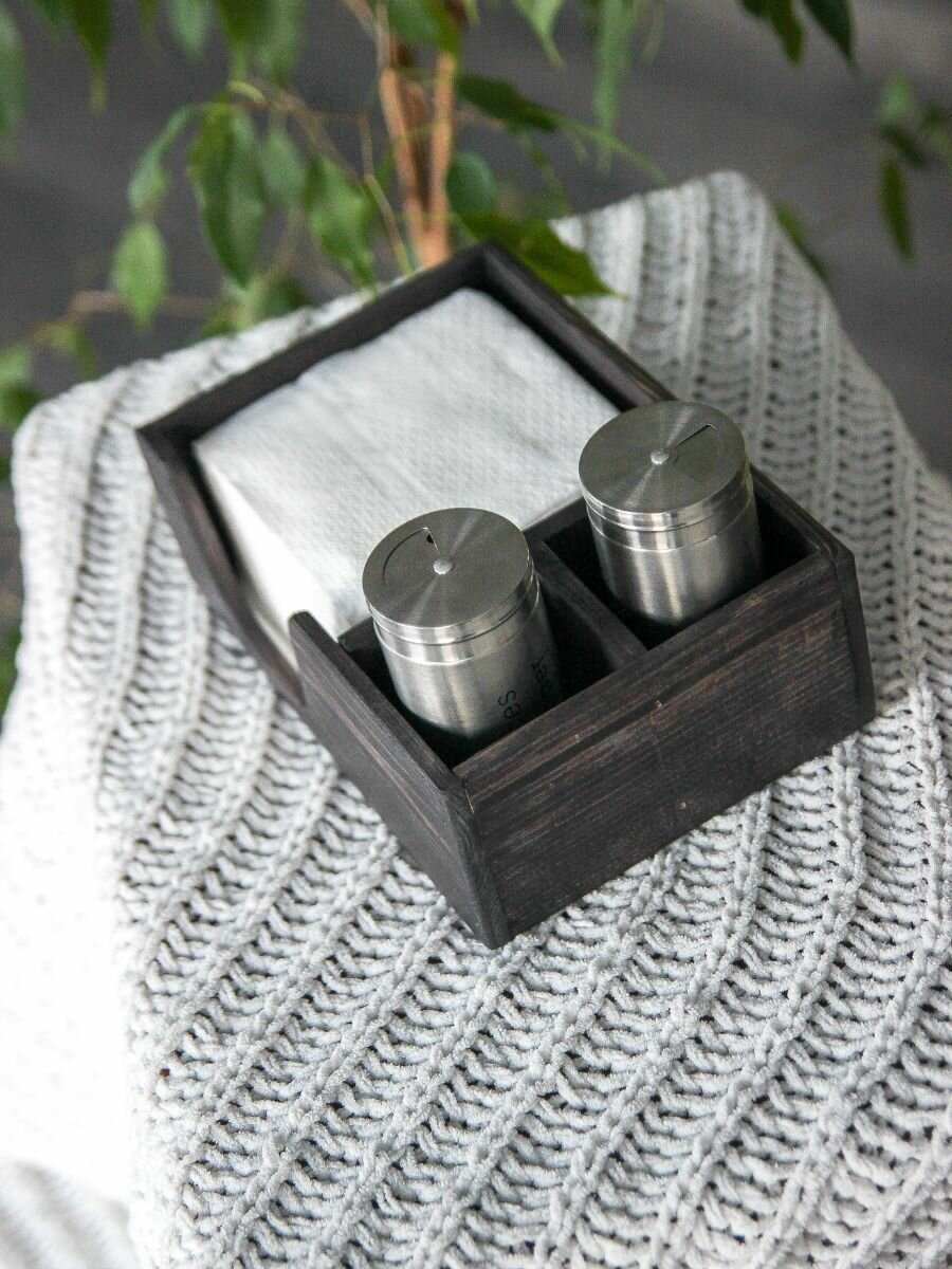Салфетница на стол с подставкой под соль и перец деревянная кухонная