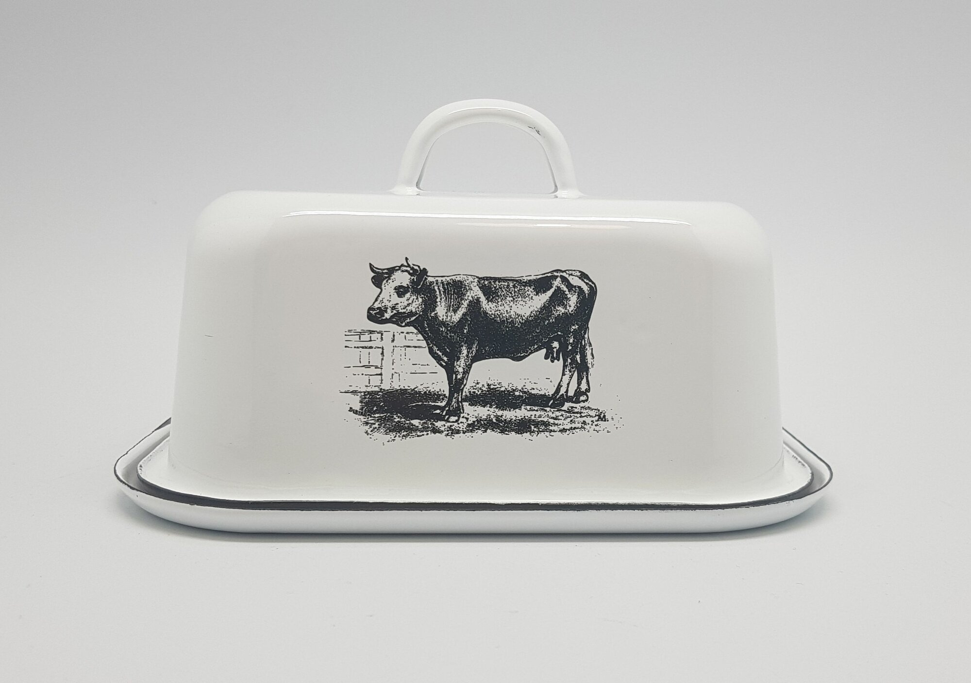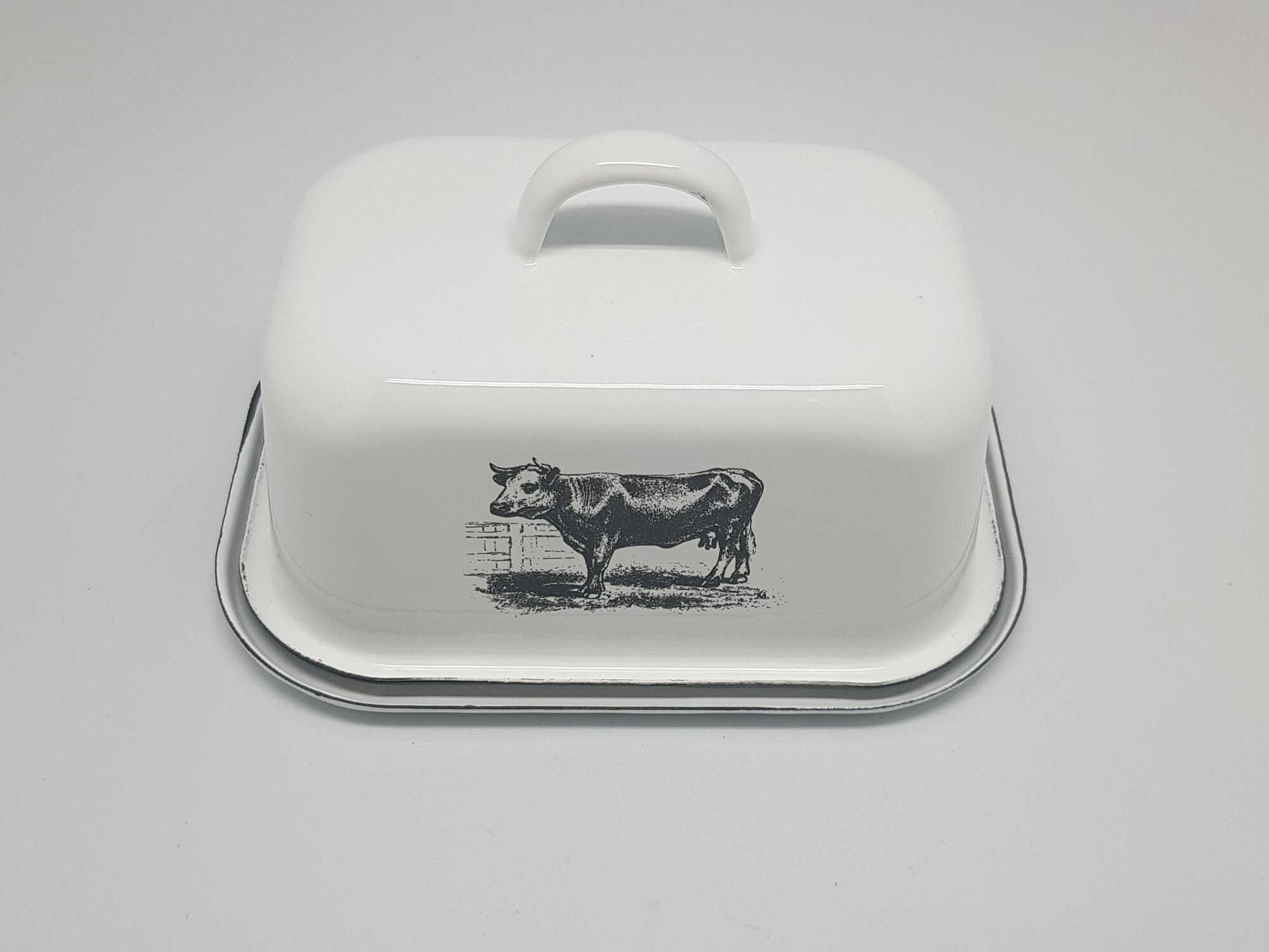 Купить Масленка большая с принтом "корова", эмалированная, длина 18.5см