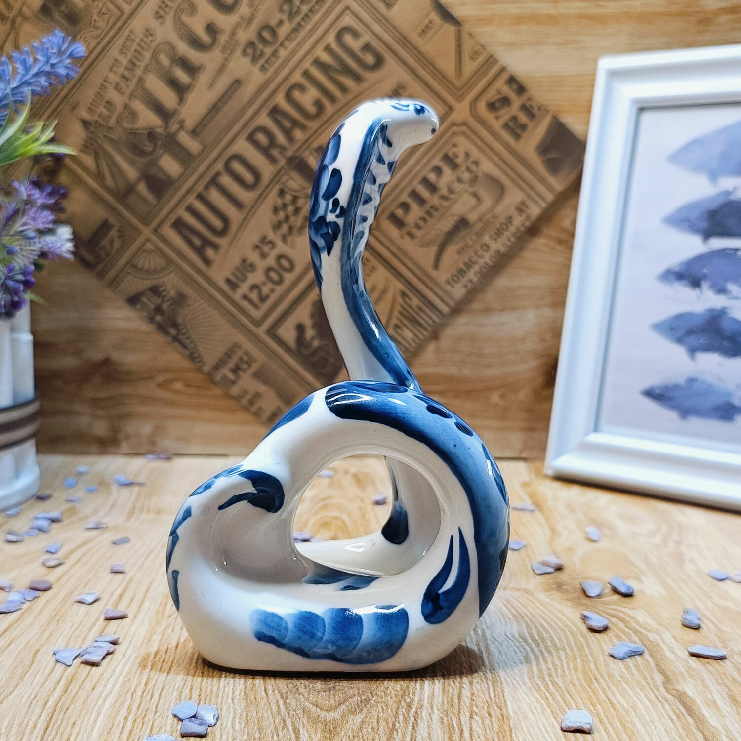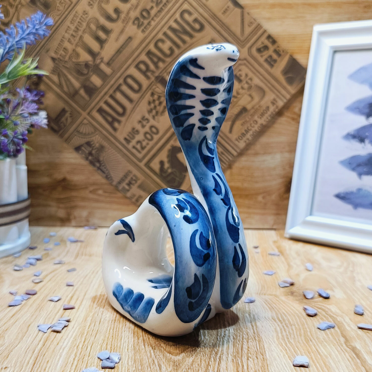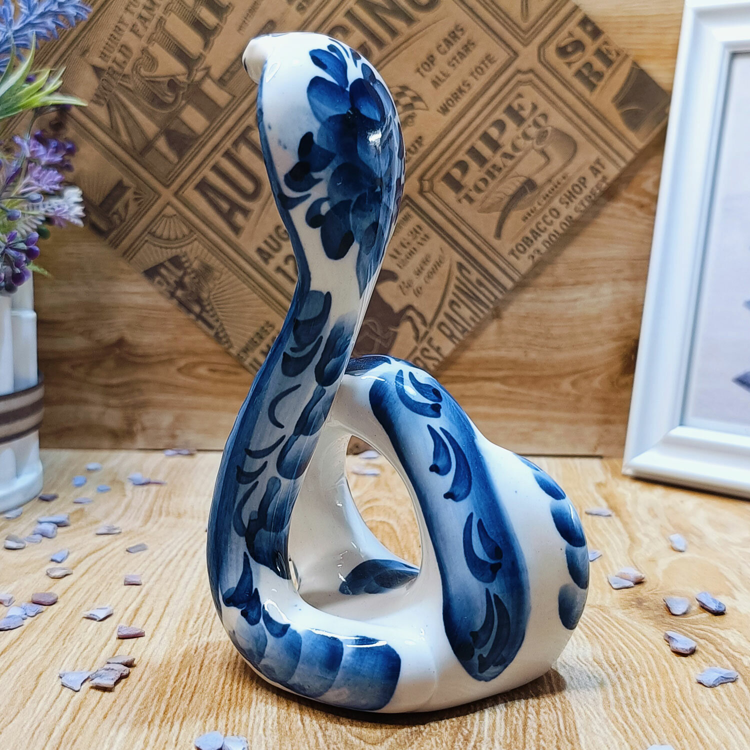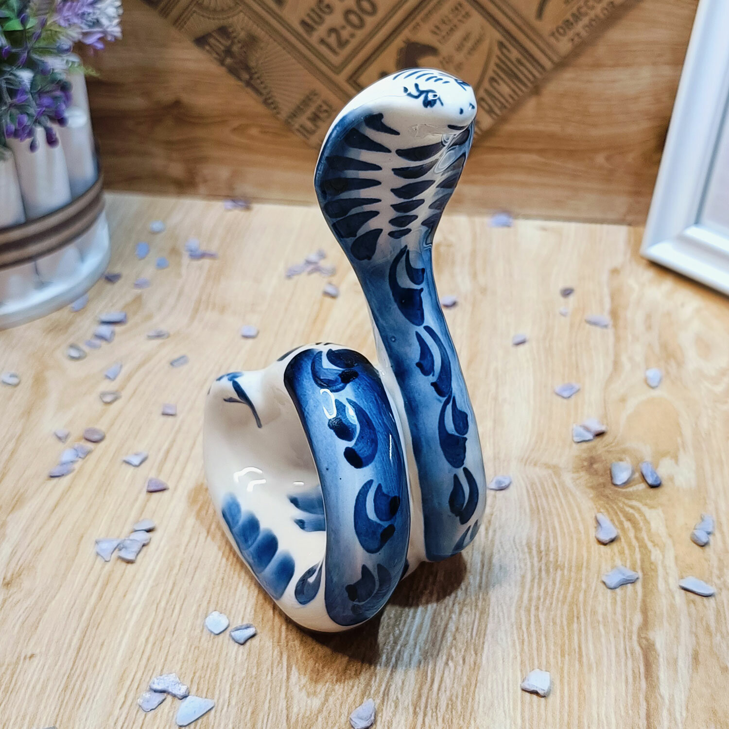Салфетница Гжель "Кобра", (гжельский фарфор, ручная роспись), высота 15.5 см. интересное: