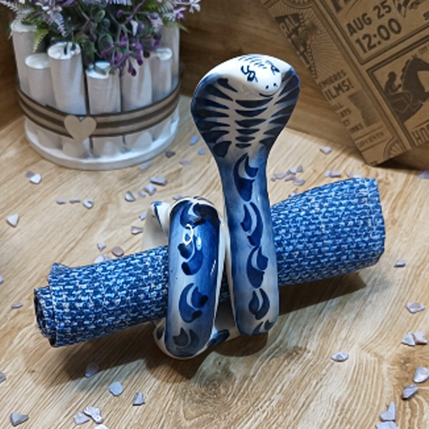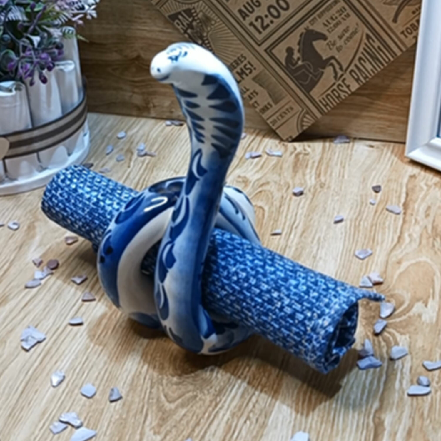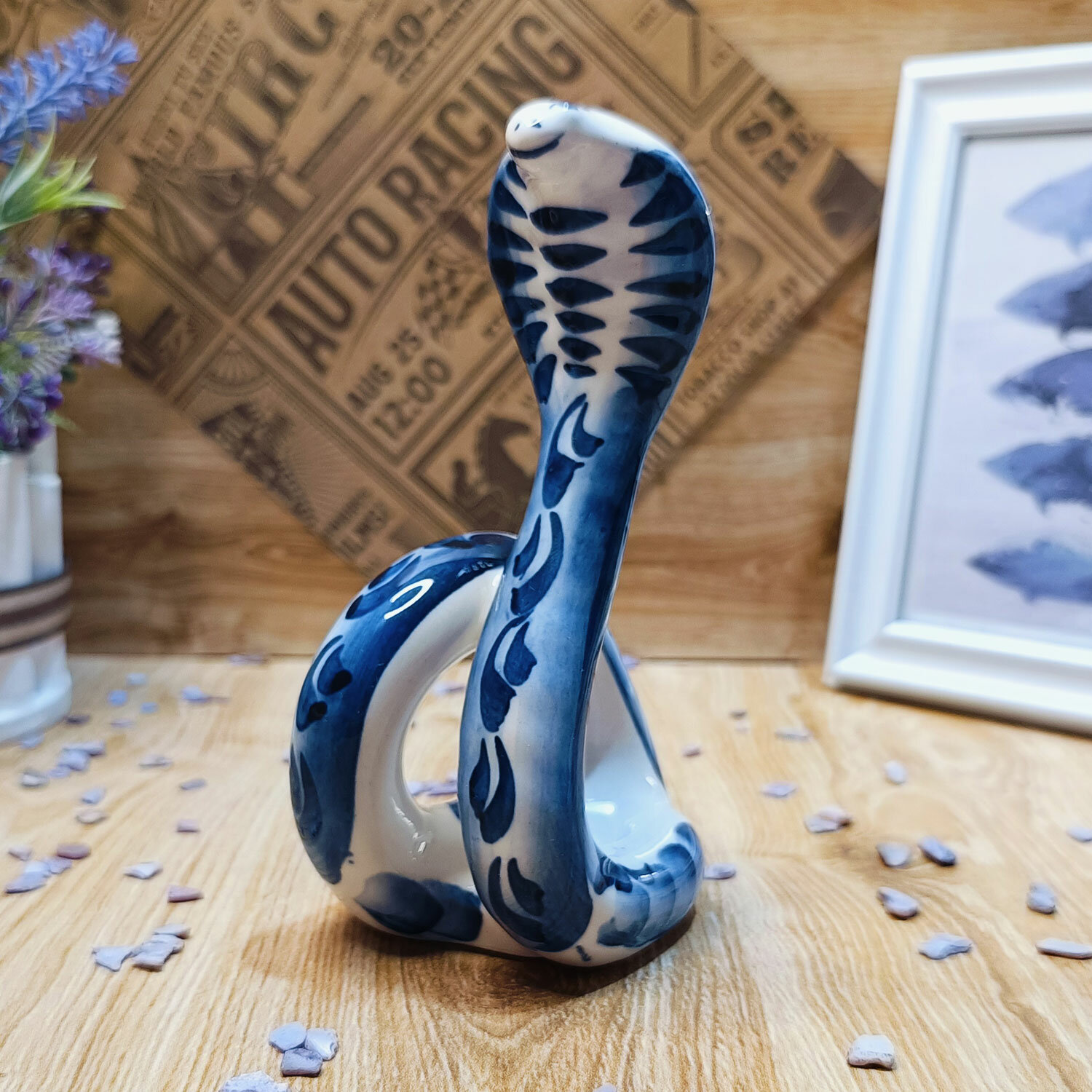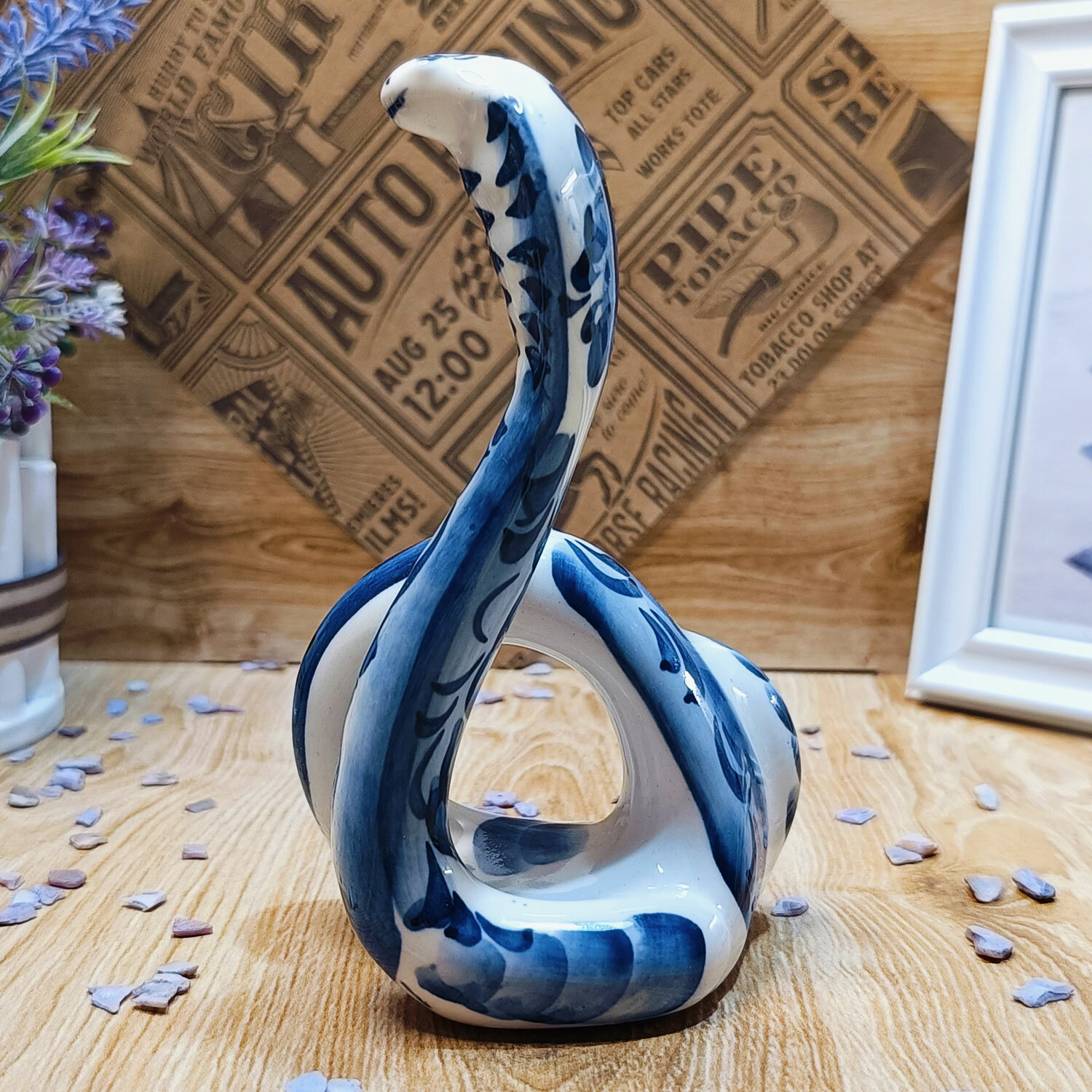 Салфетница Гжель "Кобра", (гжельский фарфор, ручная роспись), высота 15.5 см. интересное: