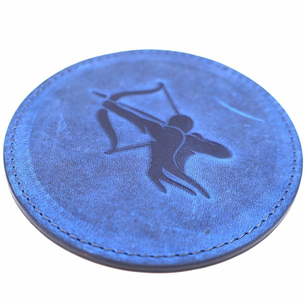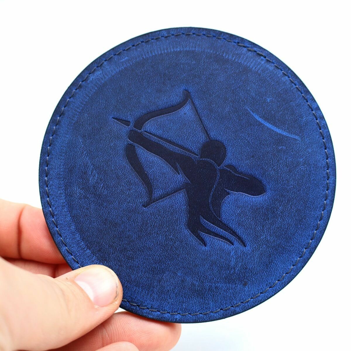 Купить Кожаный подстаканник - бирдекель, подставка под кружку c тиснением "стрелец", Frongoch Sagittarius Cobalt, J.Audmorr