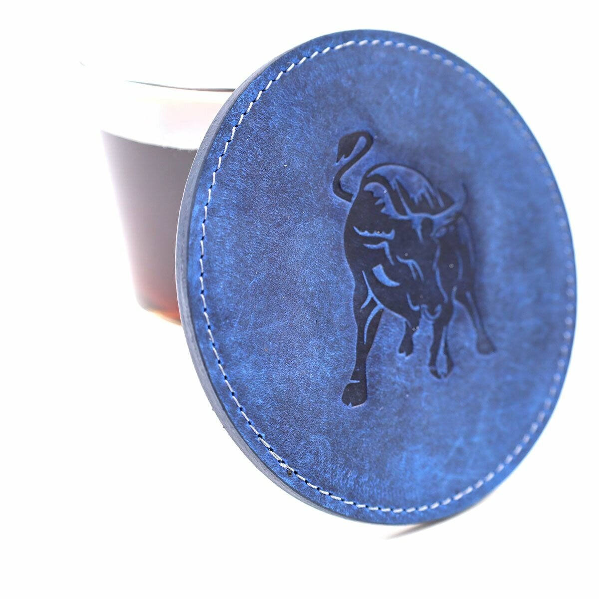 Купить Кожаный подстаканник - бирдекель, подставка под кружку c тиснением "Телец", Frongoch Taurus Cobalt, J.Audmorr