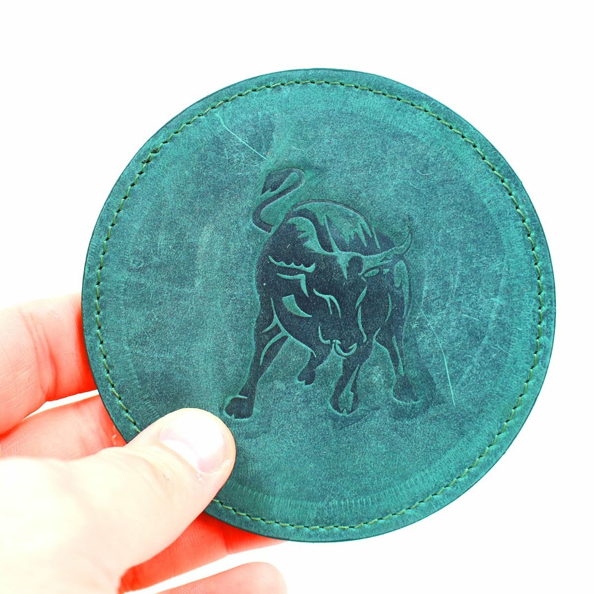 Кожаный подстаканник - бирдекель, подставка под кружку c тиснением "Телец", Frongoch Taurus Bone, J.Audmorr