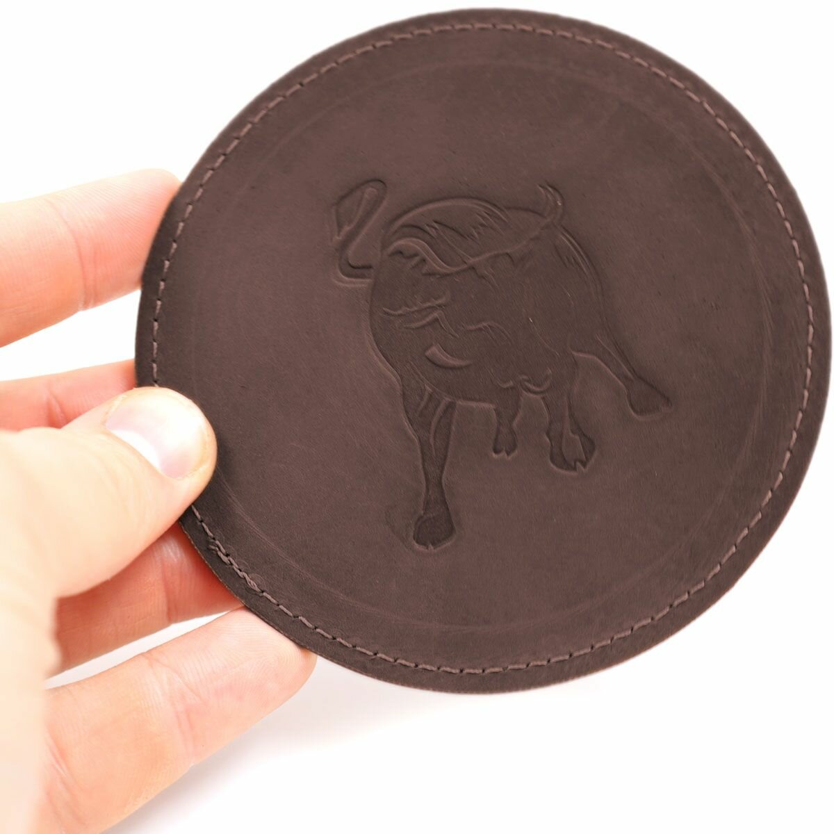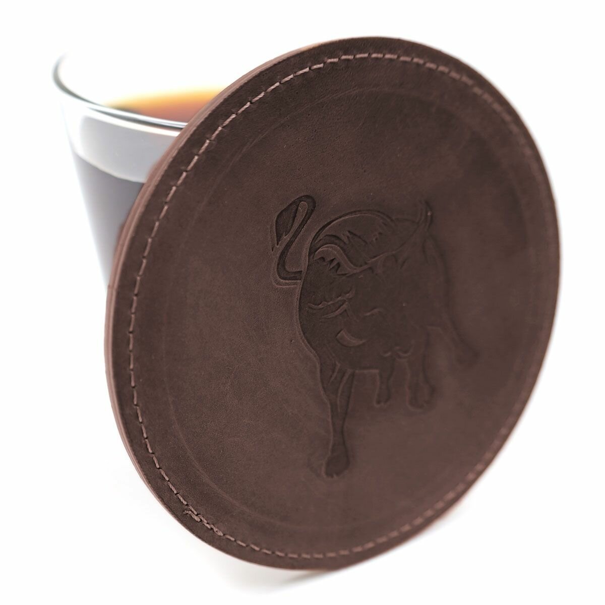Кожаный подстаканник - бирдекель, подставка под кружку c тиснением "Телец", Frongoch Taurus Bone, J.Audmorr